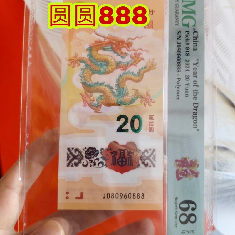 龙钞圆圆888倒置0168国门086头尾8PMG68