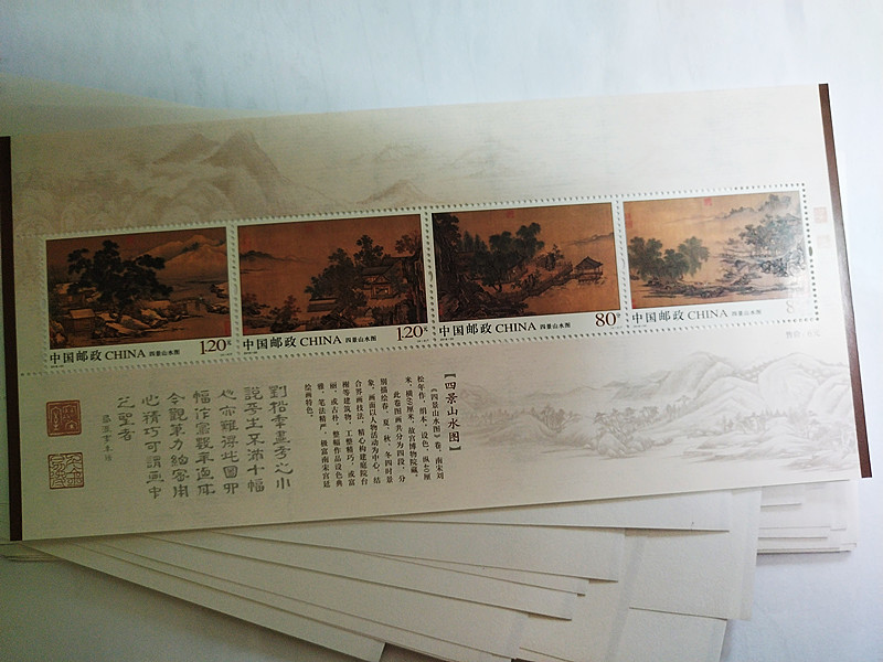 四景山水图小全张发行量只有576.25万,属于缩量邮品,又是宋代名画家孤品,胶雕版印刷,将古典绘画的精妙意境完美展示出来,同时具备艺术与投资收藏价值,目前,价位在面值附近,风险极小,有眼光者可观注.