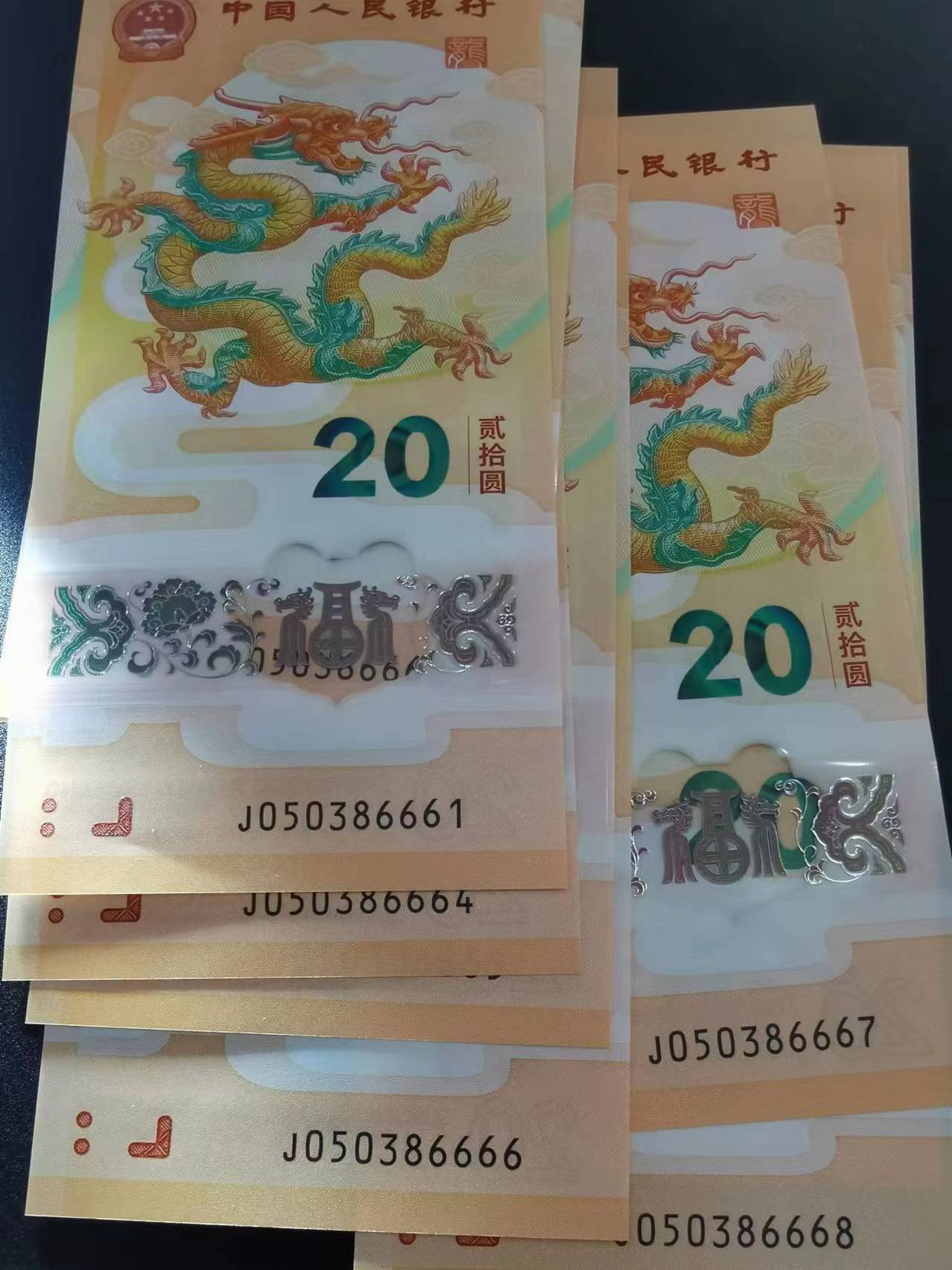 如图。售一组小龙钞6666无4.7标十。第一张左下有个软折痕。其他完好。单价1950元包邮。款到发货。直接确认有效。