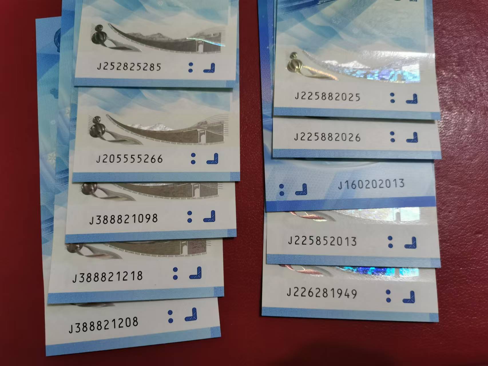 冬奥龙珠号,如意王尾8.年份尾8,朦胧尾8(7张有指甲印)。。。。共52张,平均售24元每张,一起出