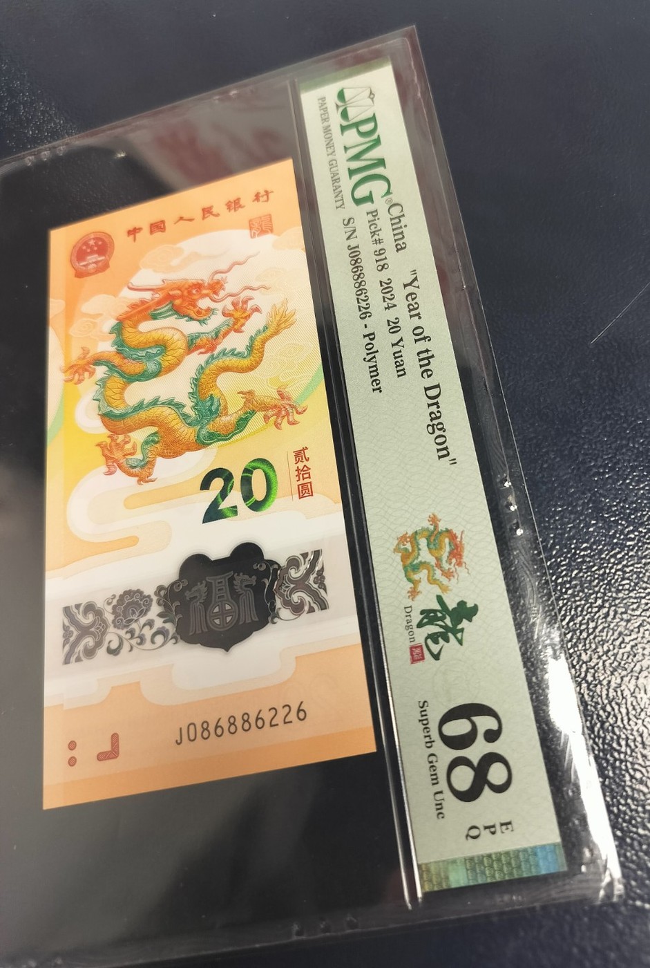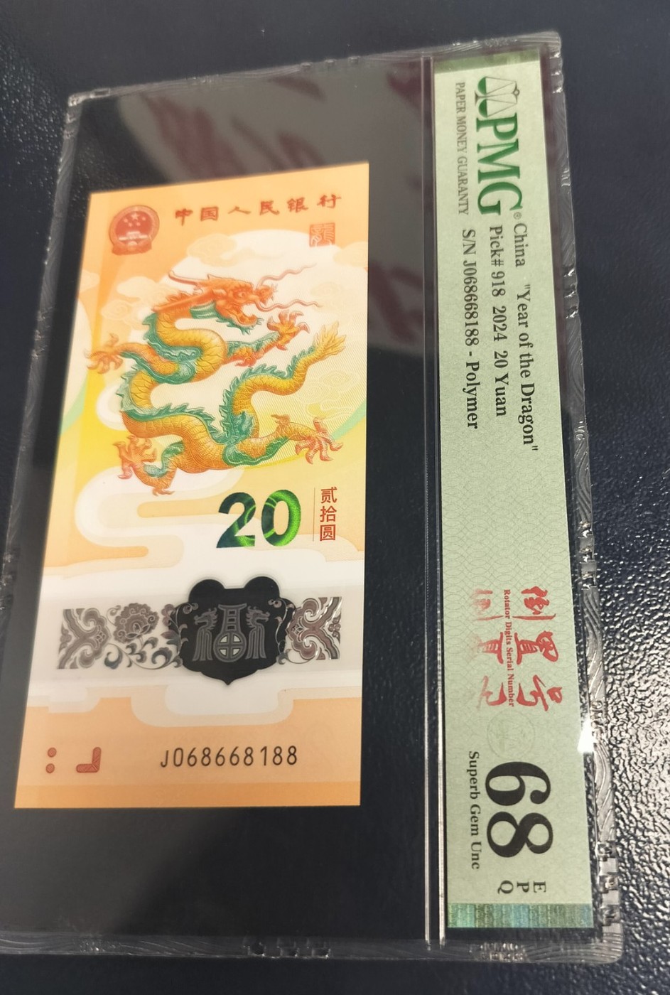 龙钞纪念钞086头★中国龙0268组合全偶尾六靓号。银行原货未流通品相,PMG68E,如图发货三包。