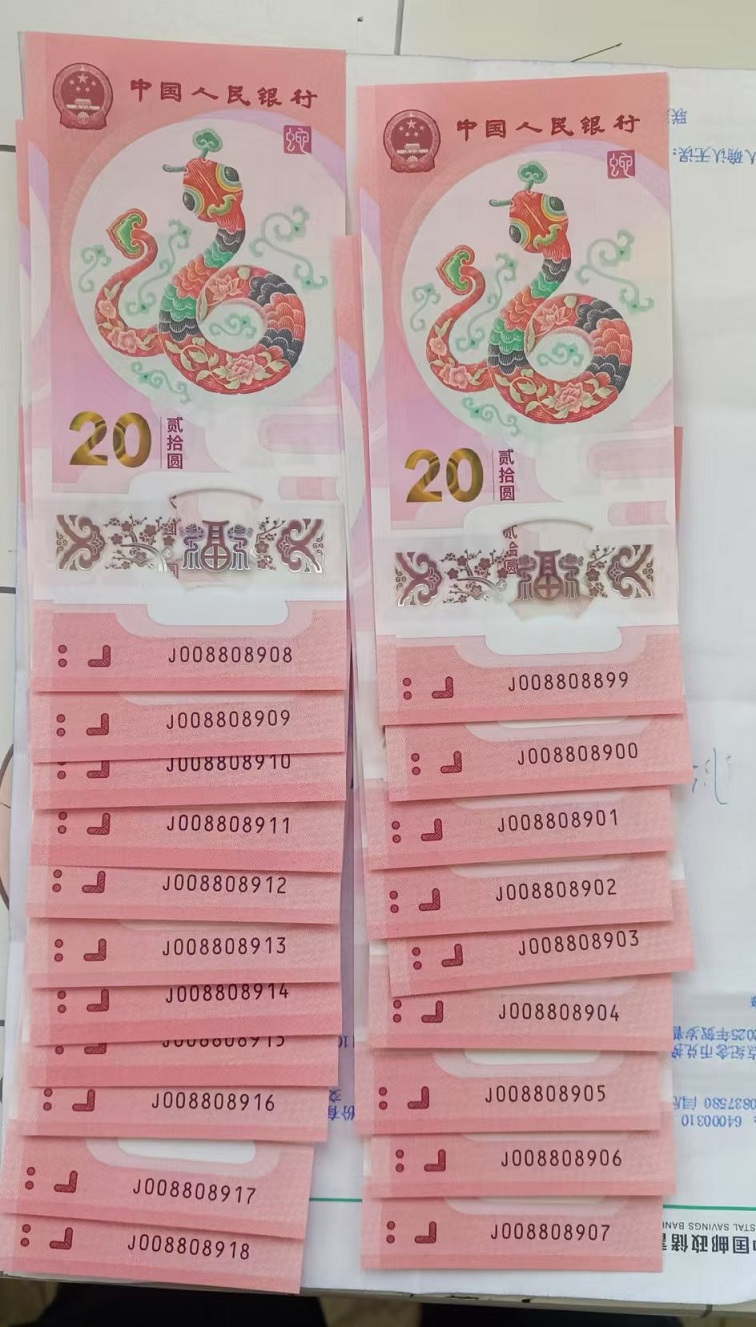 蛇钞20张连号,圆圆号,如下图所示,2.38万包品包邮