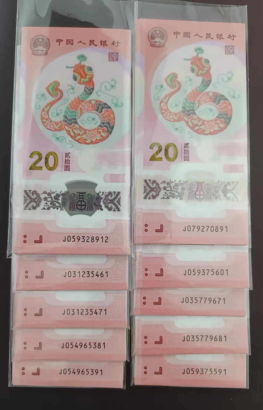 售蛇钞号码如图,数量如下: