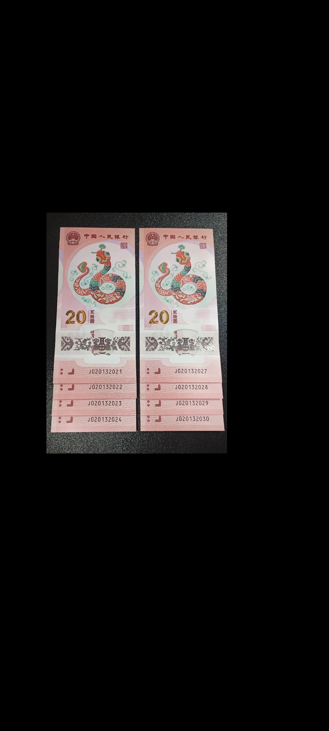 标准十连0201320210一020132030共计8张双蛇年份号,请看清图片其中020132025一020132026这两张不在内。