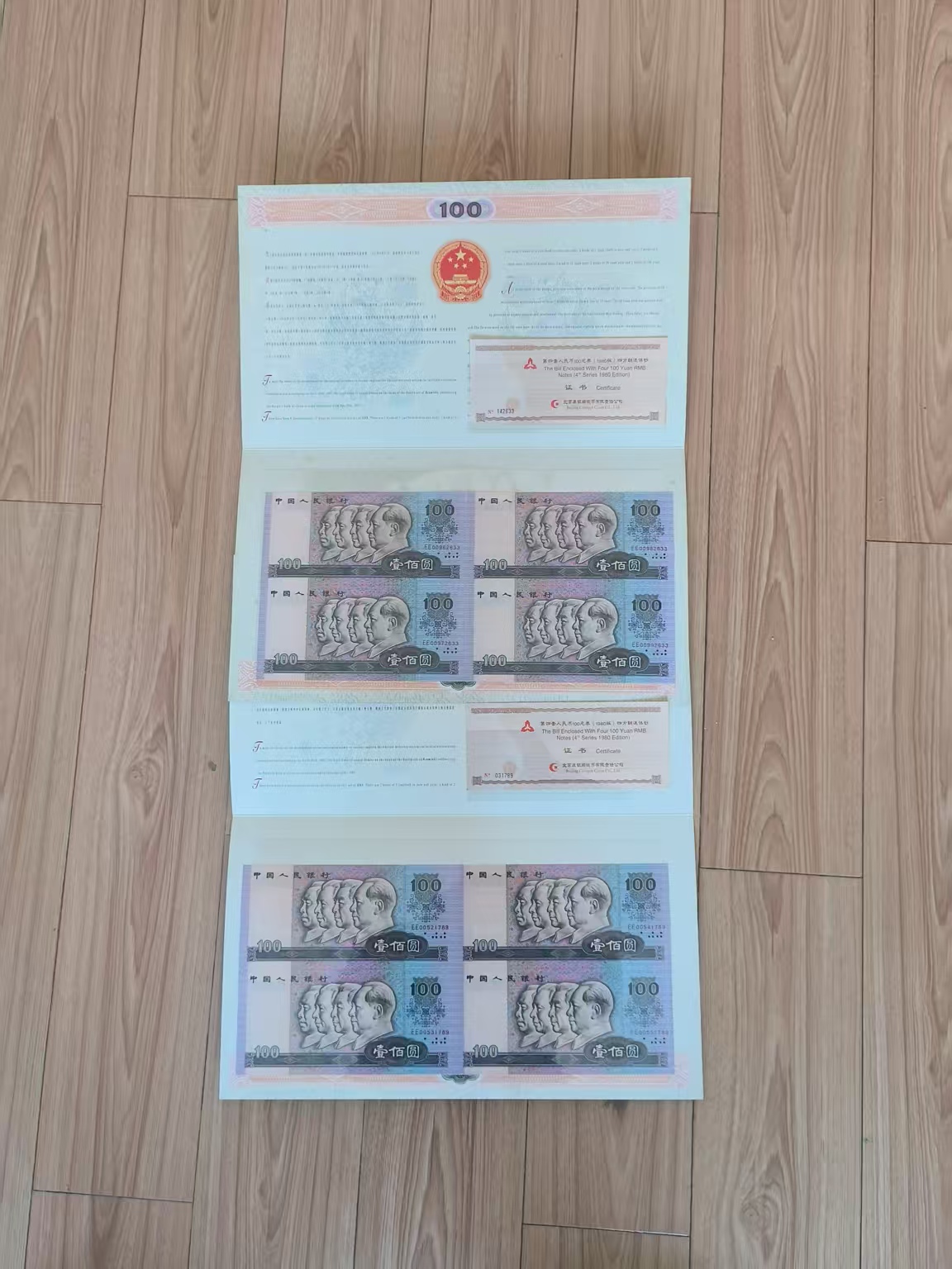 → 售80100连体钞