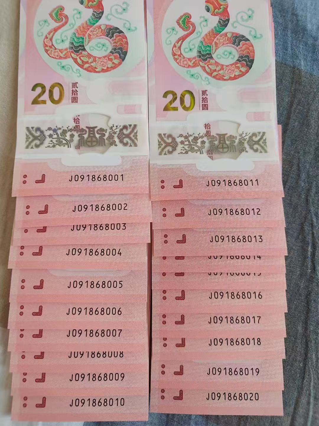 出五福倒置号20连01689乱序头,7300元包品包邮,一起出。直接确认或者电联。