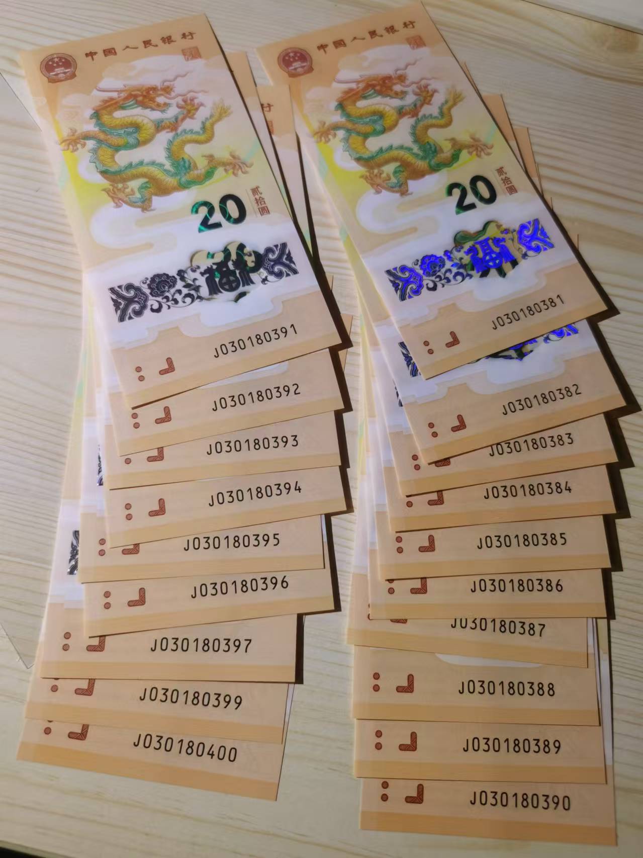 小龙钞 小龙钞 倒影号0138组合 尾88 二十连