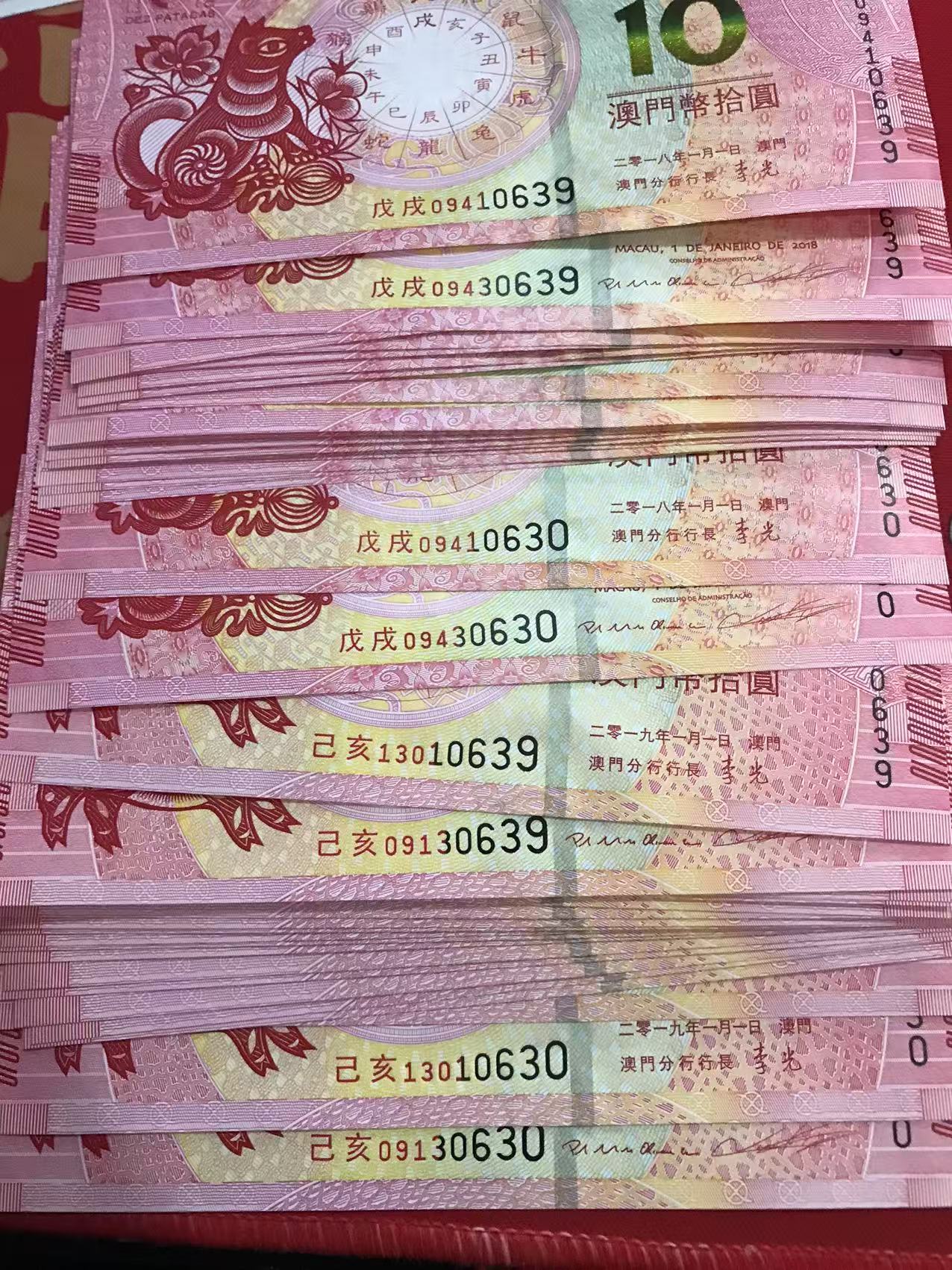 澳门生肖钞狗和猪各10连号。