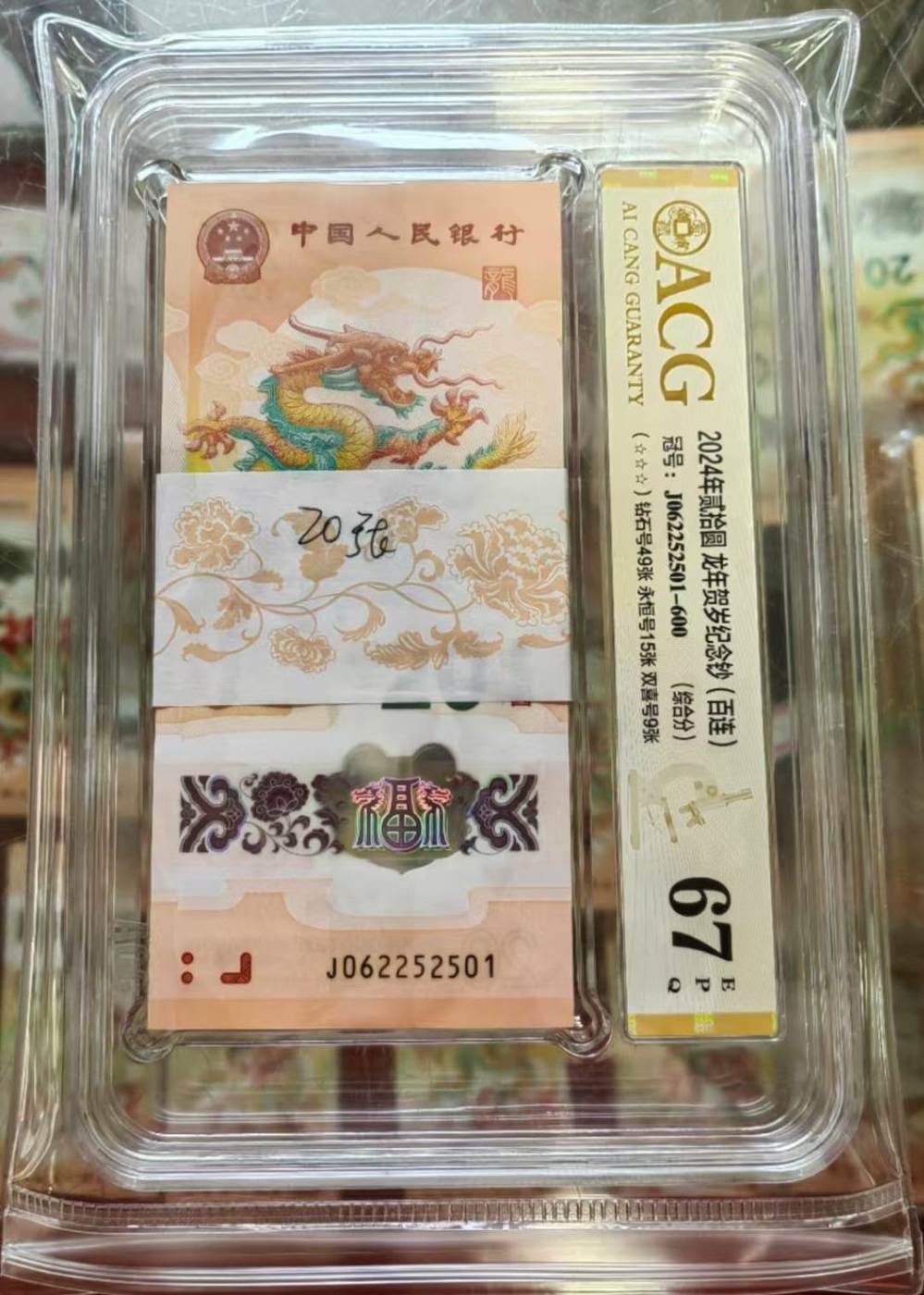 出龙钞无347爱藏评级一刀,J062252501,价格:47800