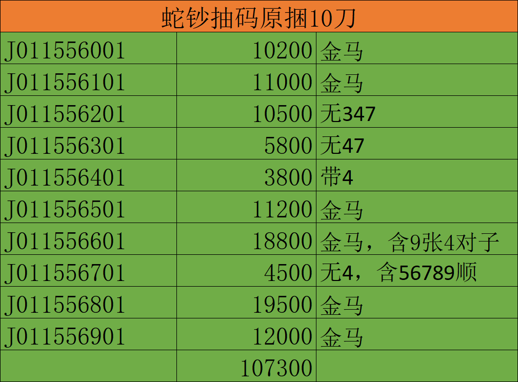 蛇钞共10刀,原膜抽码,通走106000。价格不议,直接确认有效。看图加微信。