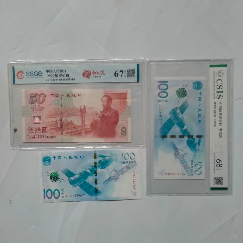 两张评级,一张散钞,如图