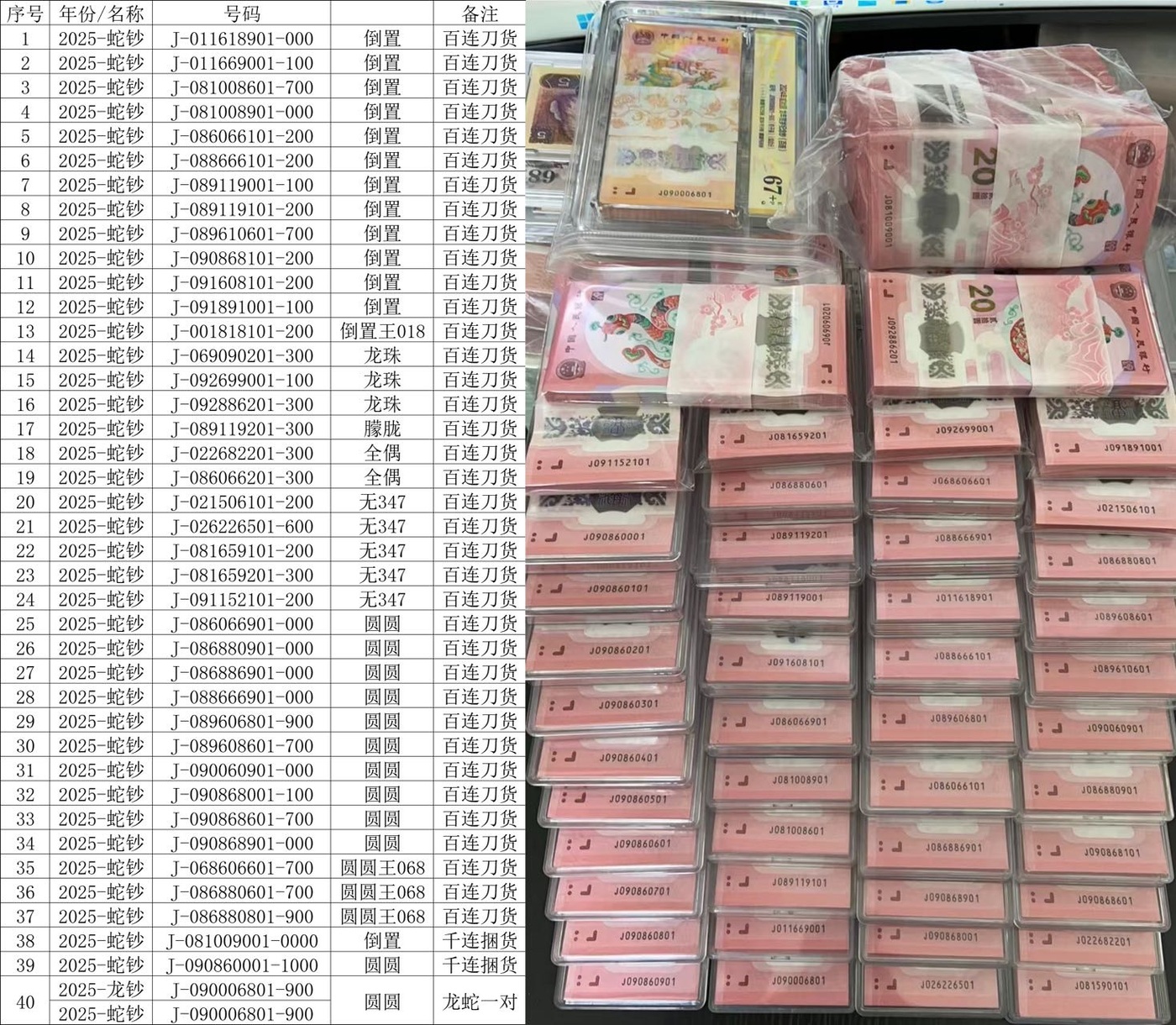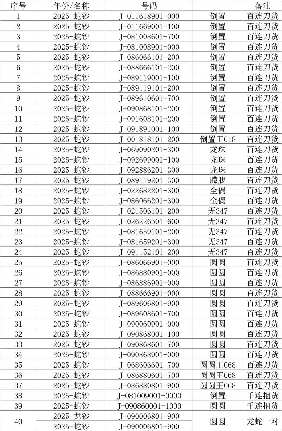 → 蛇钞,刀,捆,倒置,圆圆,等靓号,出售