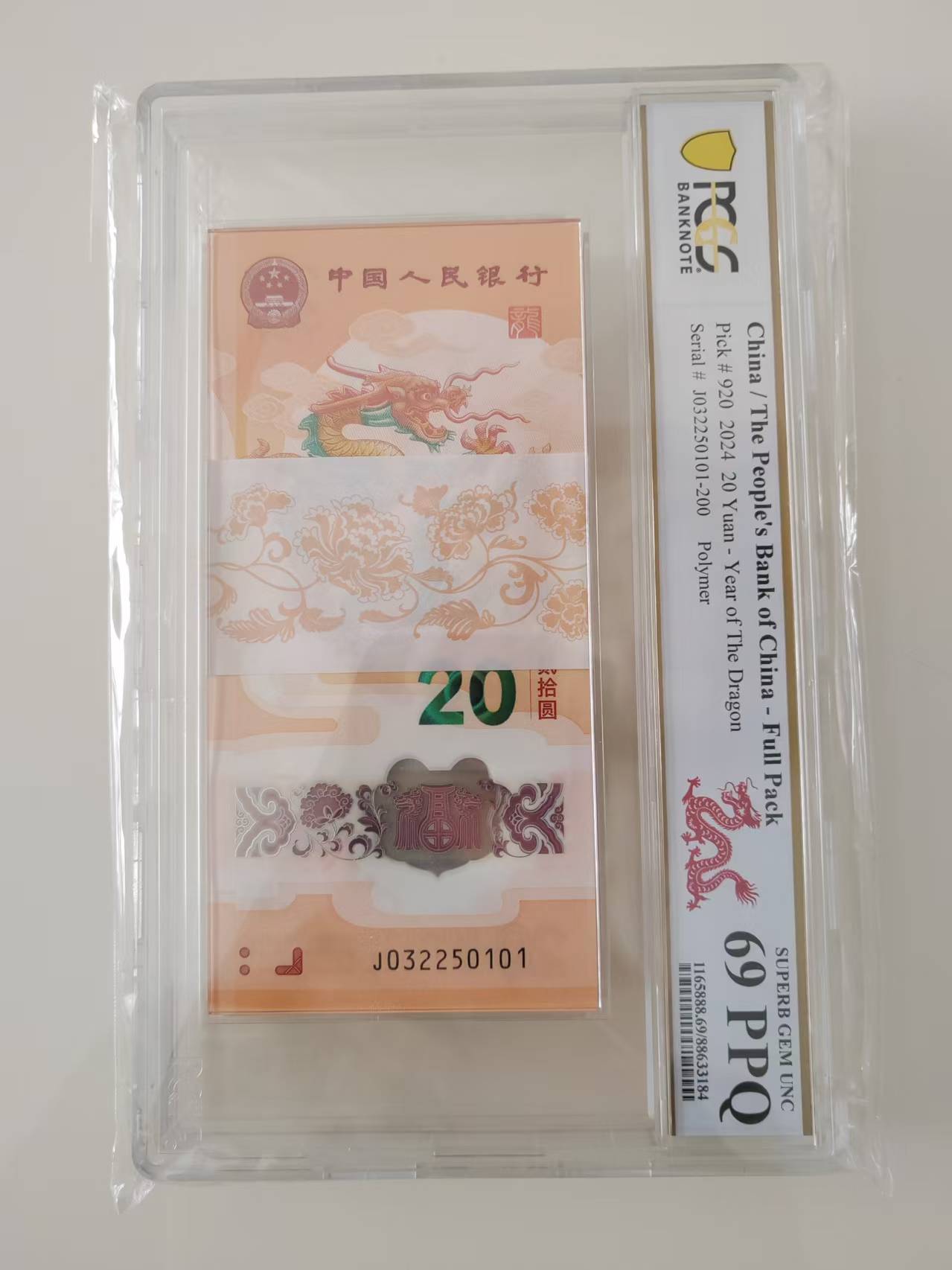 出小龙钞无47一刀,PC69分,号码J032250101,2.85万,顺丰包邮