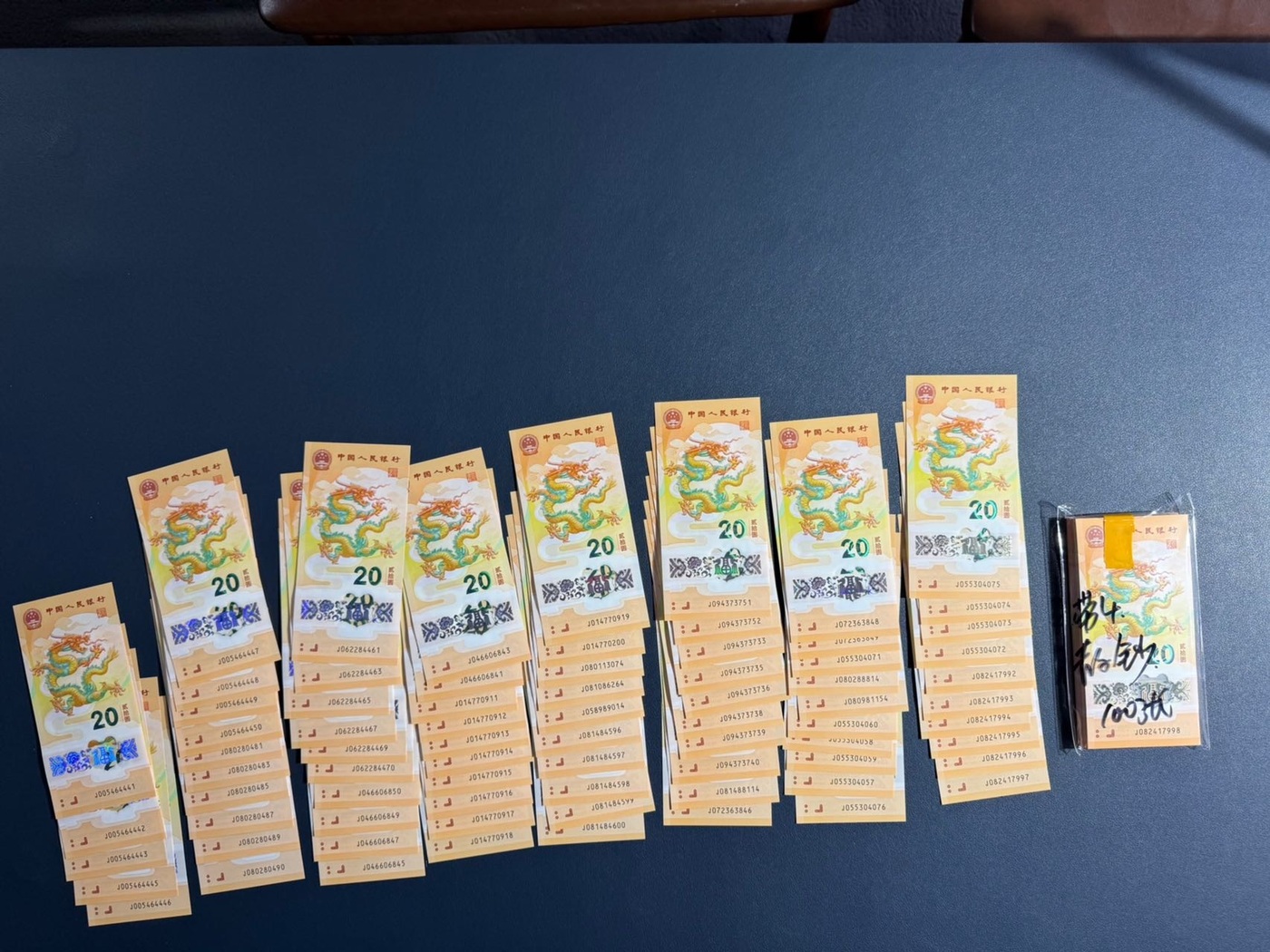 一共确认60743·龙钞标十107组加散钞