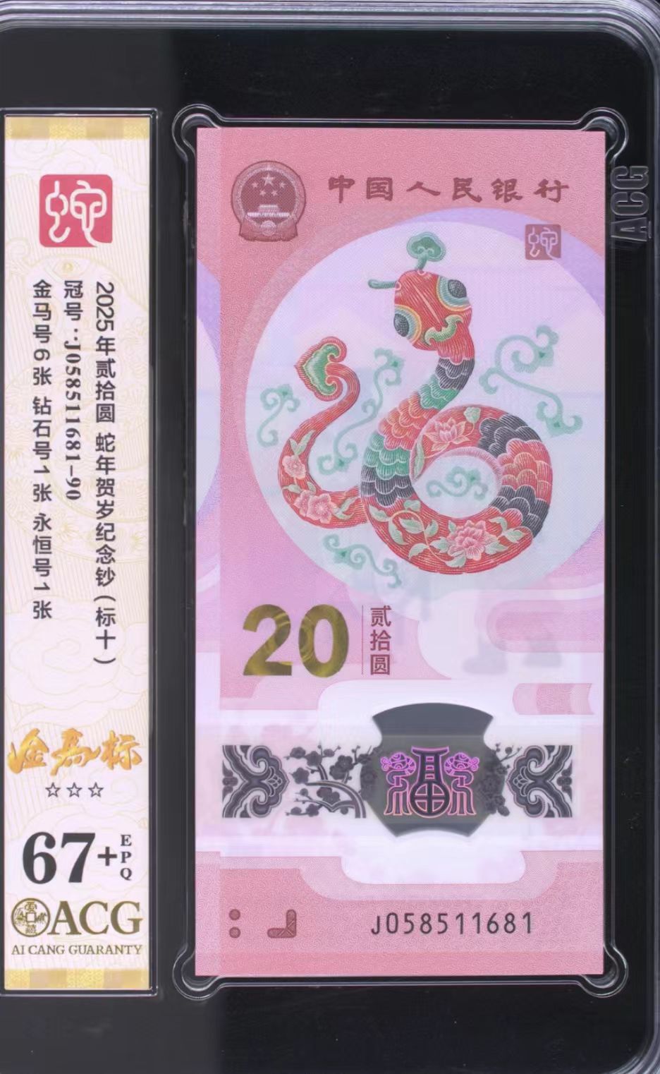 出蛇钞爱藏评级67+分满号金马1688标十