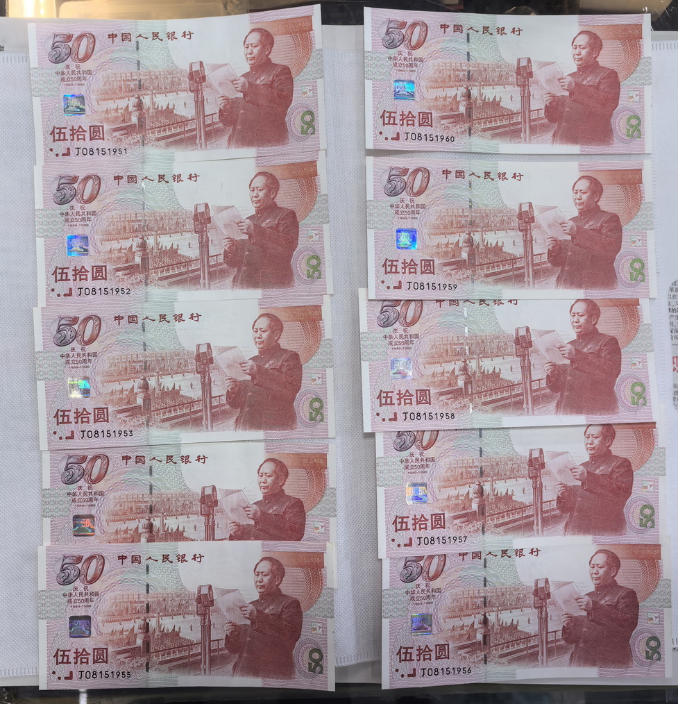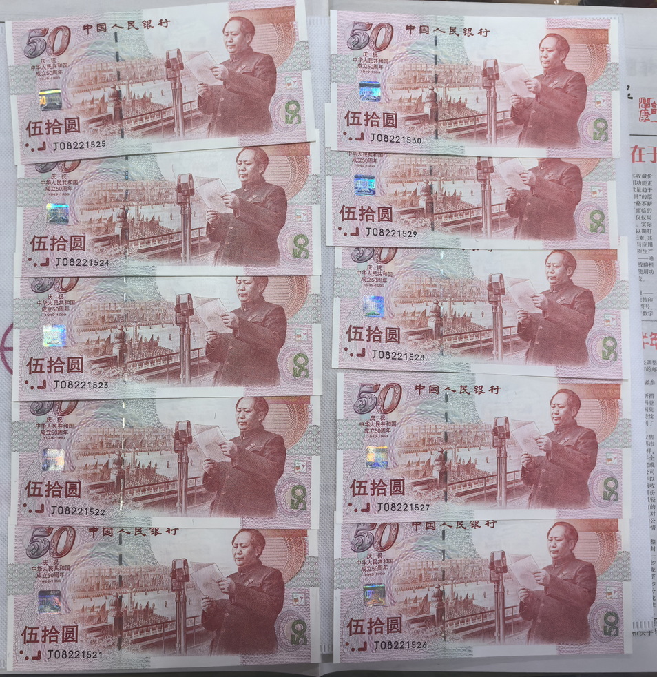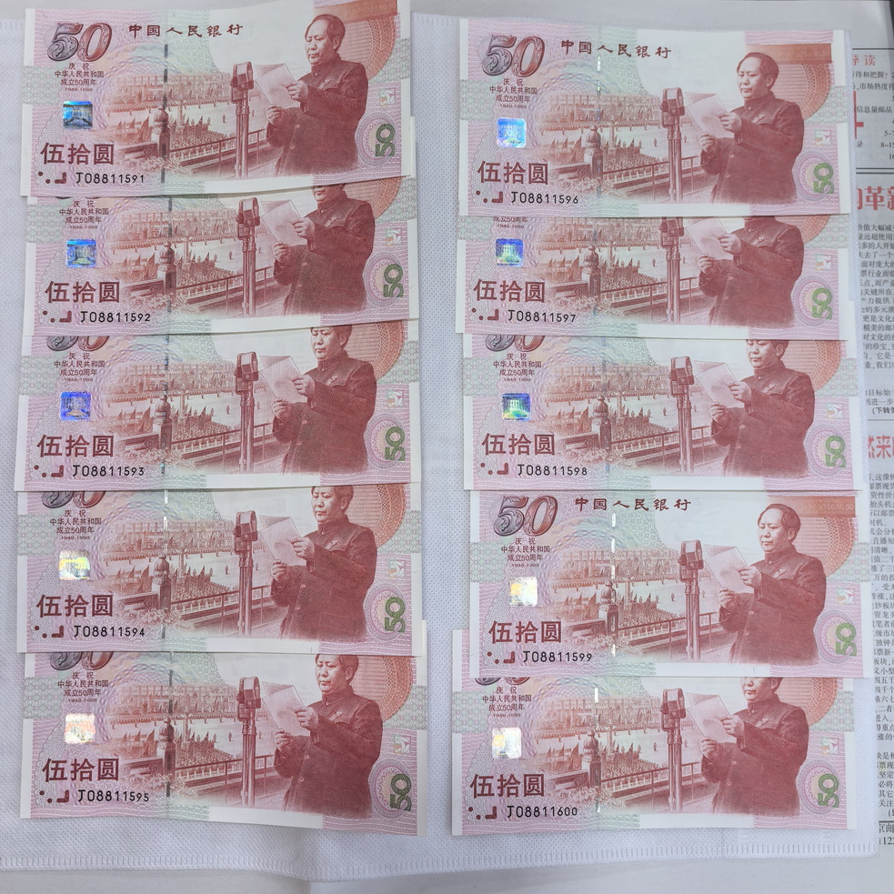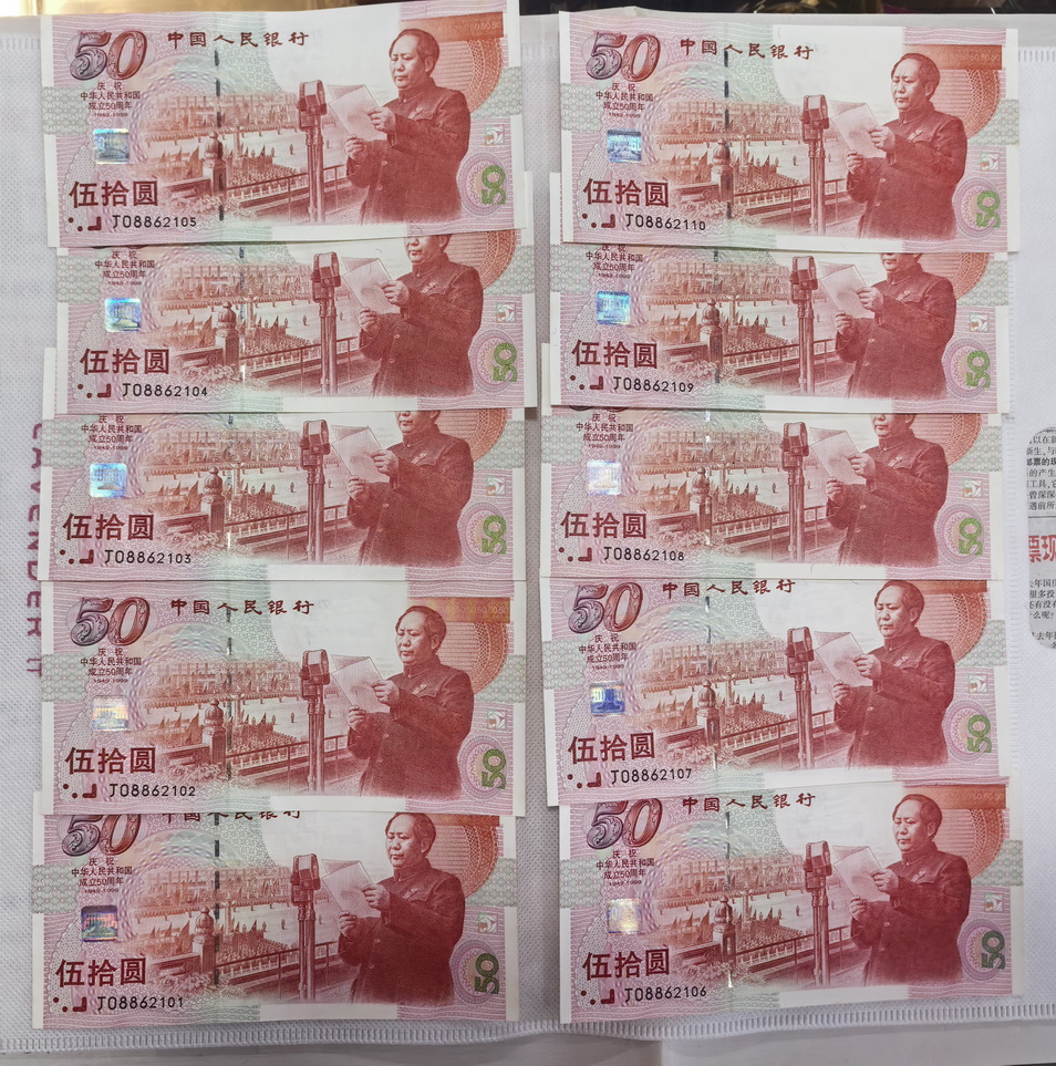 出建国钞无47标十两组,售2000元/组,无347标十两组,售2460元/组,金马倒置标十1组,售2680元/组,朦胧号标十1组,售2800元/组,以上品相如图,通走包邮,电联确认