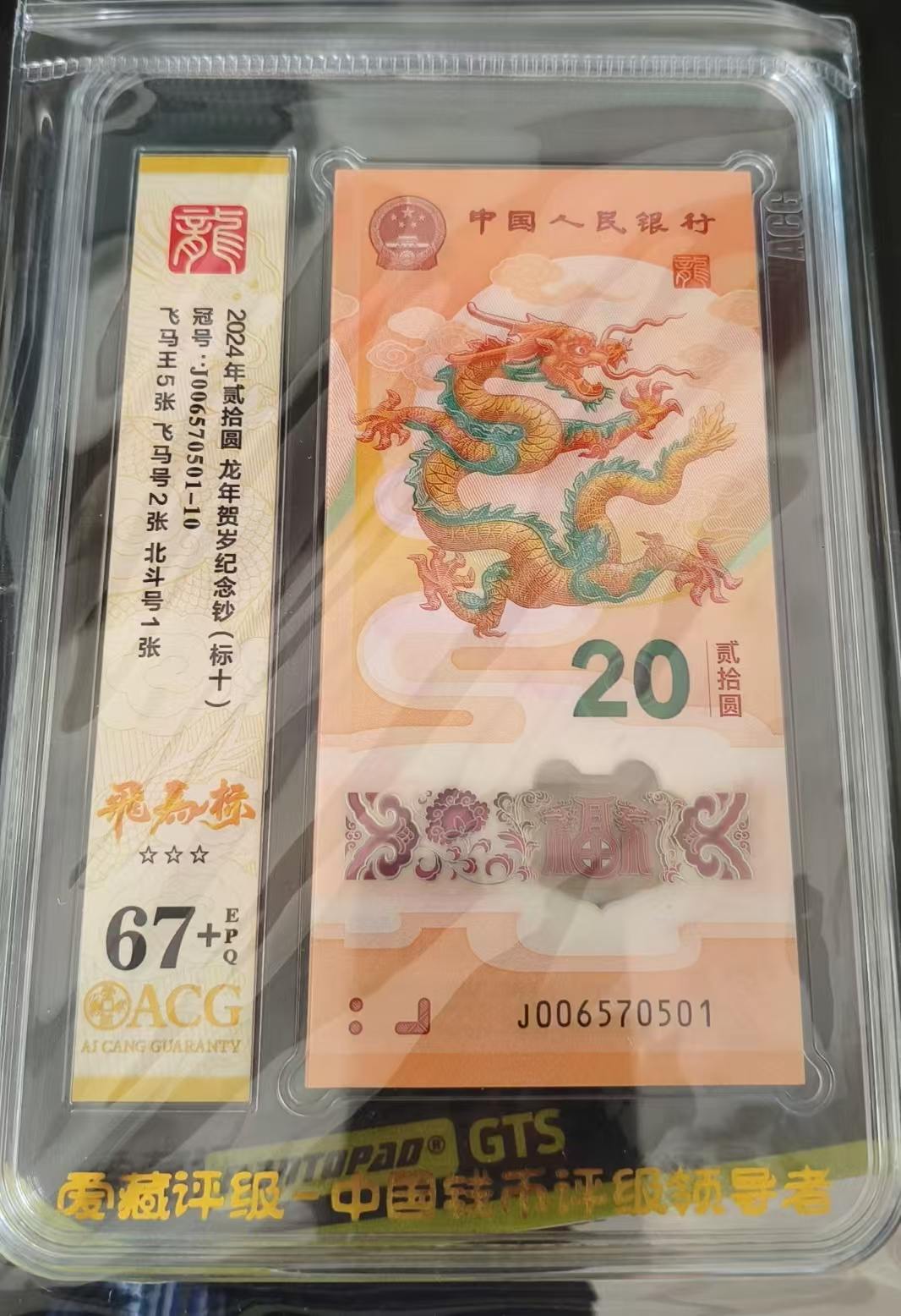 出爱藏67+飞马王小龙钞标十