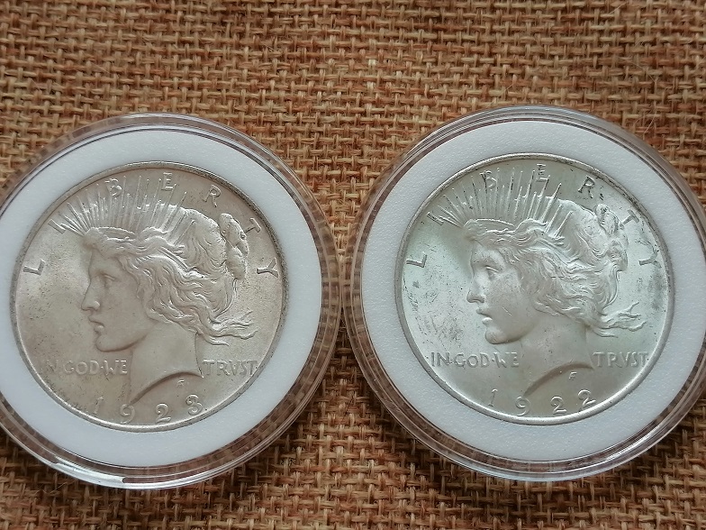 1922年-1923年带光美品和平大银币;2枚齐售不分拆600元包普快!