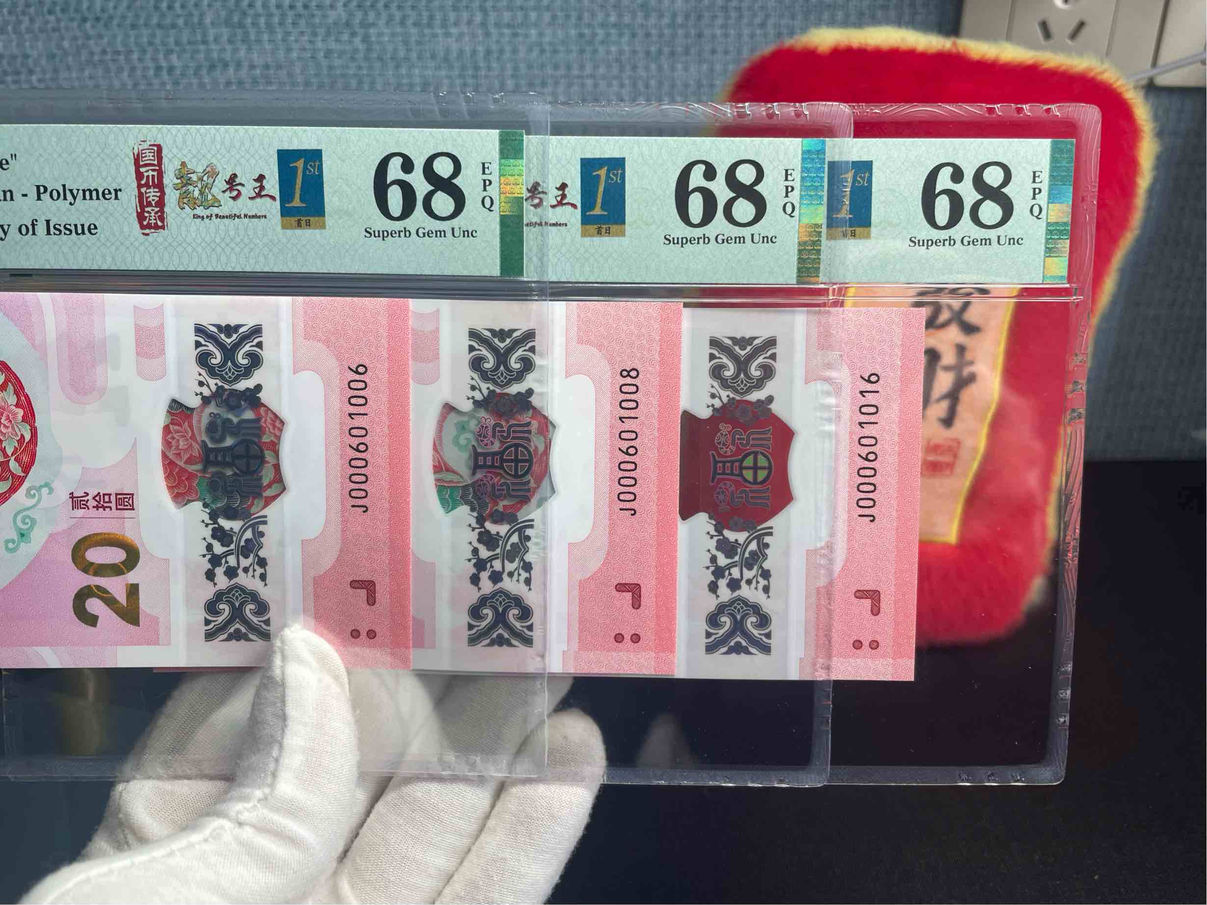 蛇钞小司令016组合二枚,PMG68分000601001售1480元000601006已售000601008已售000601009已售000601016售1980元000601018已售000601019已售