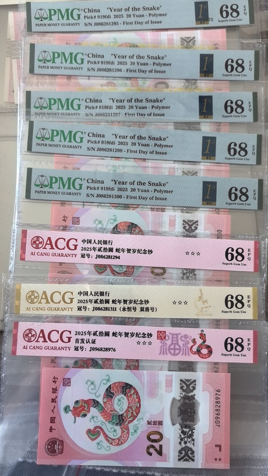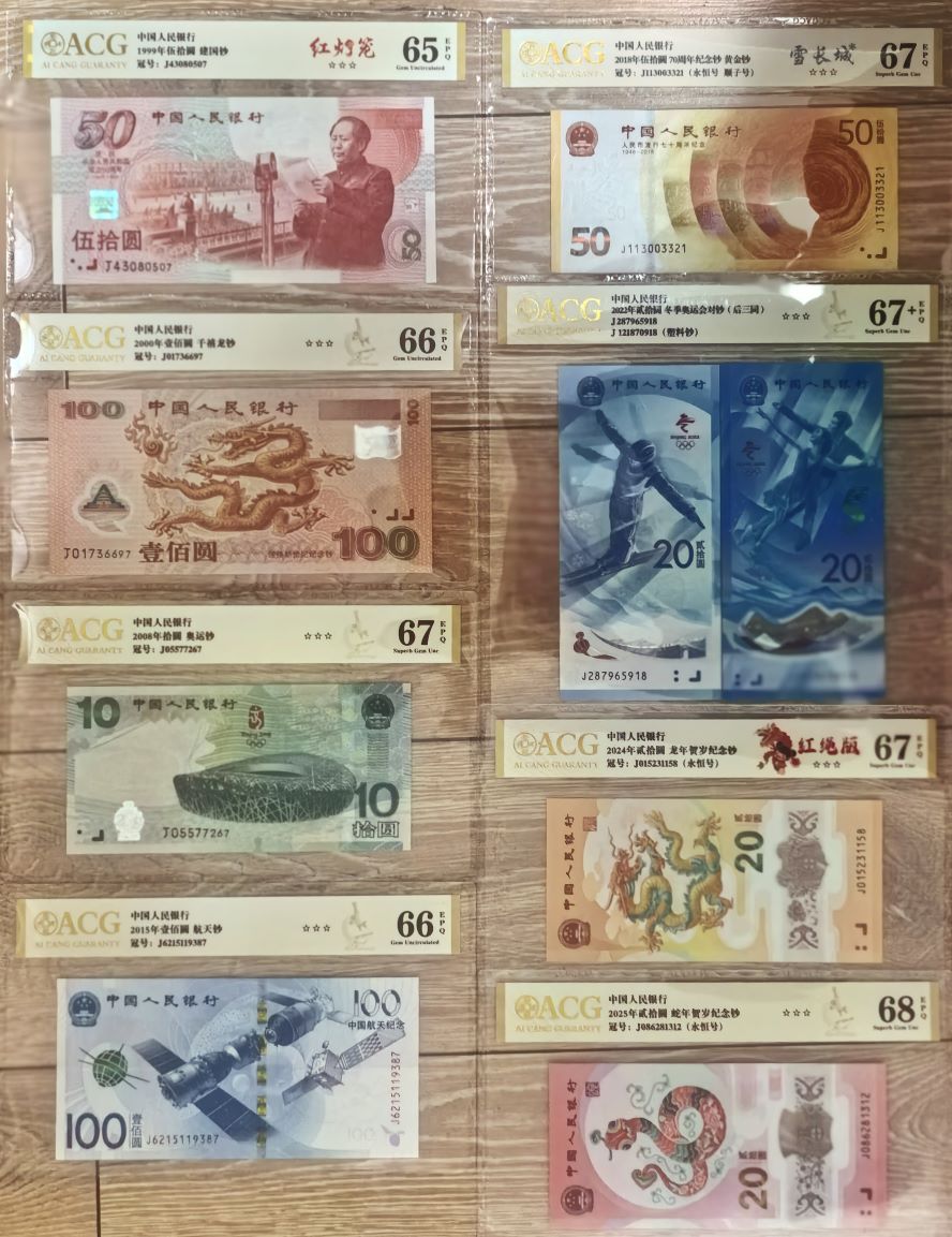 → 出纪念钞大全套爱藏评级,蛇钞PMG首日68分..........