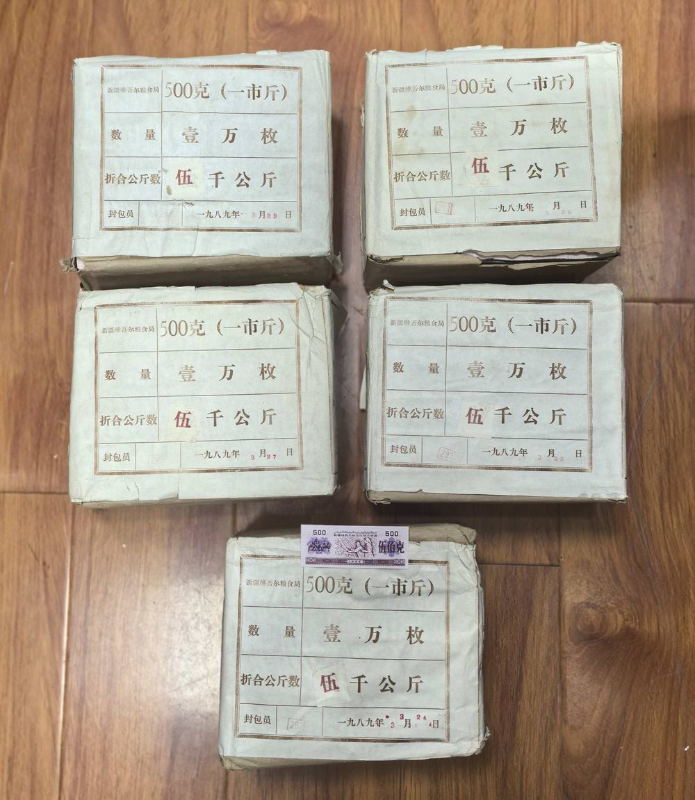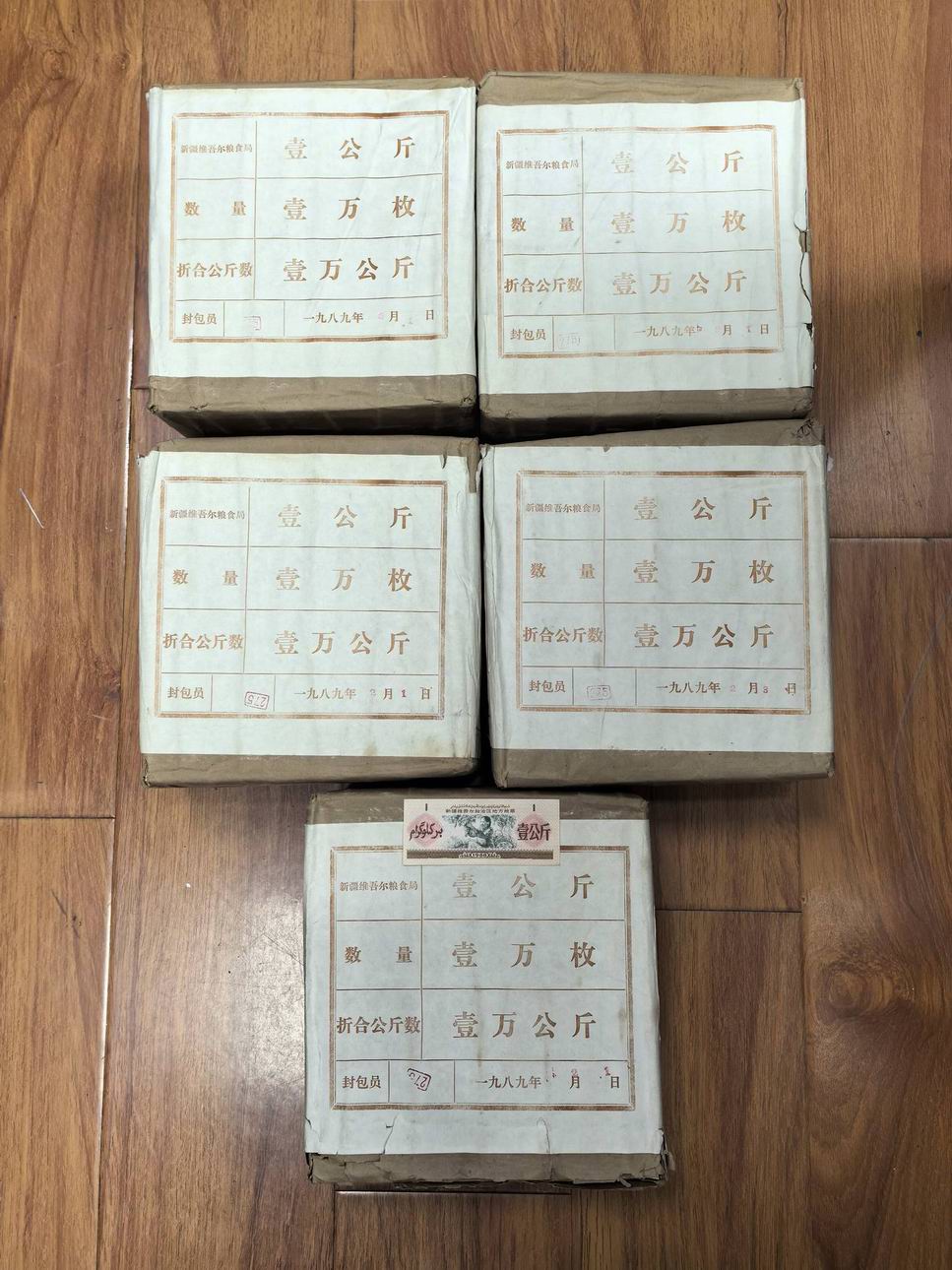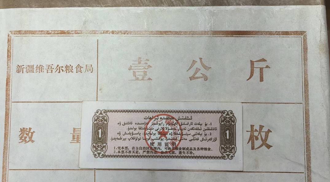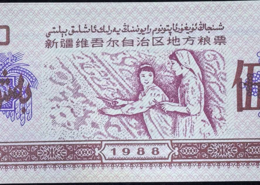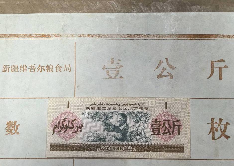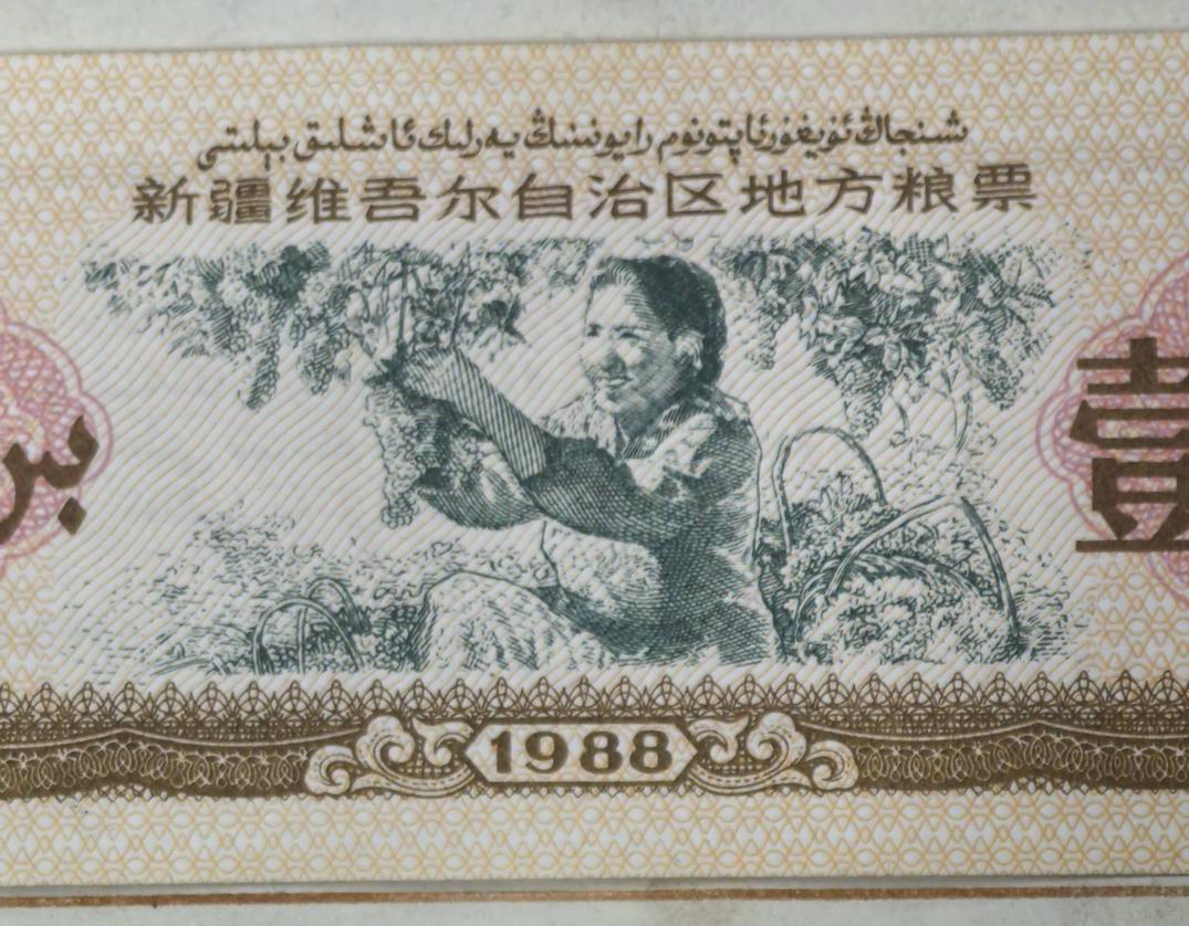 新疆1988年粮票1公斤(摘葡萄)5包,原包。