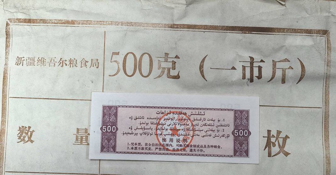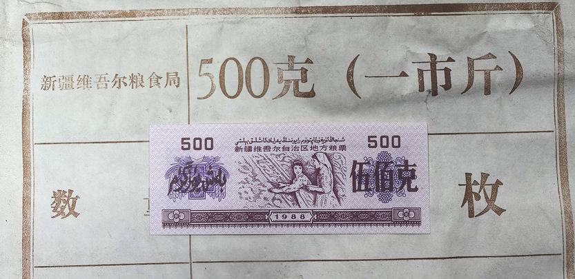 新疆1988年粮票500克(女纺织工)5包,原包。