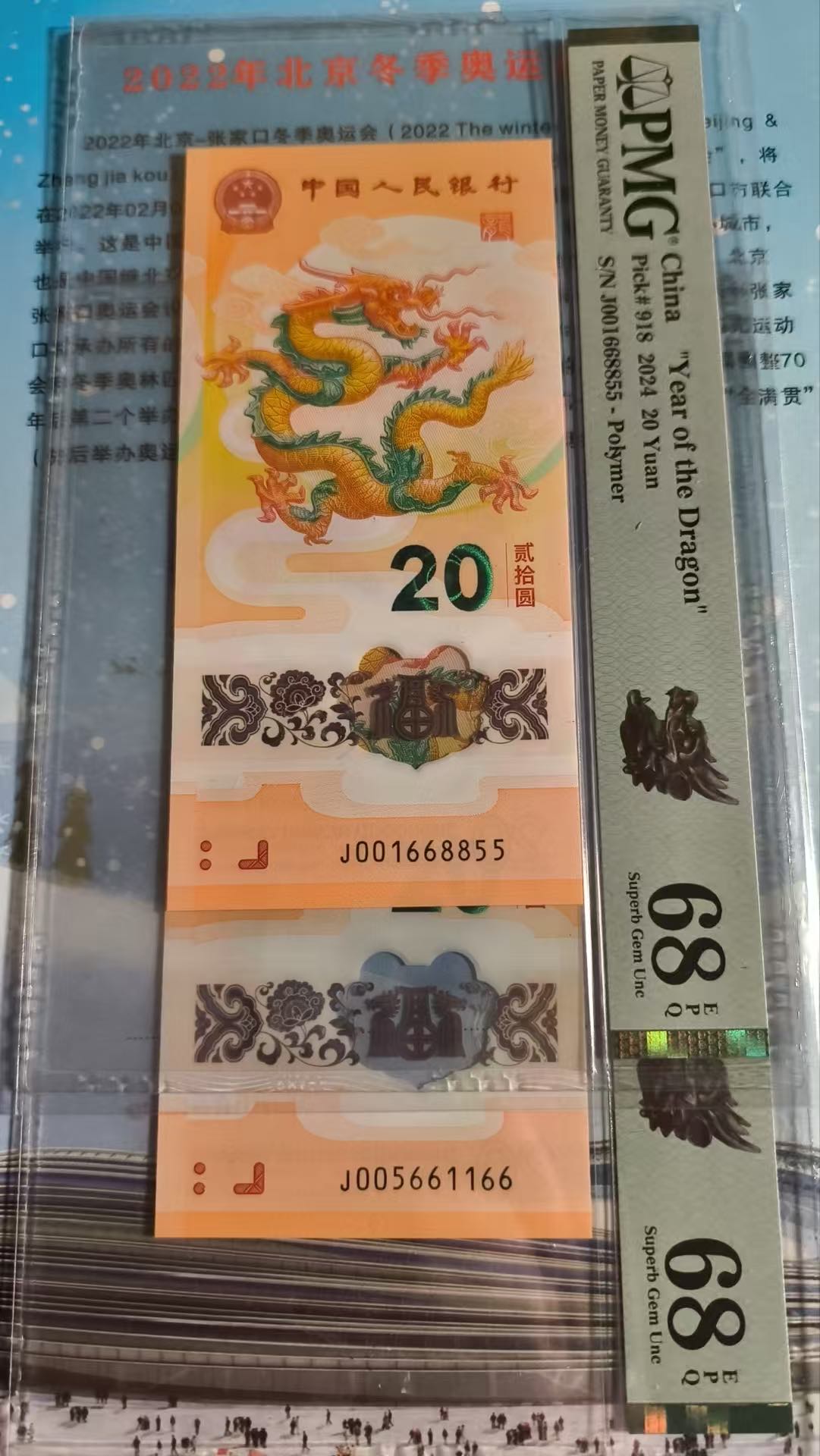 出小龙钞金马号四对子pmg68分