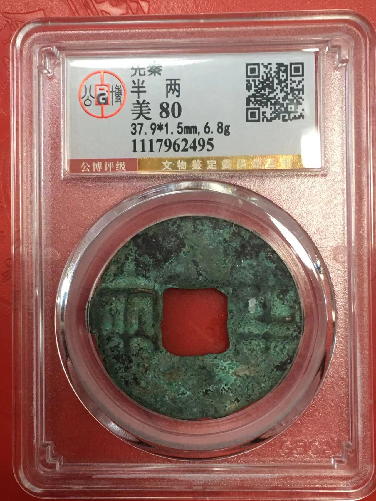 从未见,极大直径3.79厘米,先秦半两公博美80
