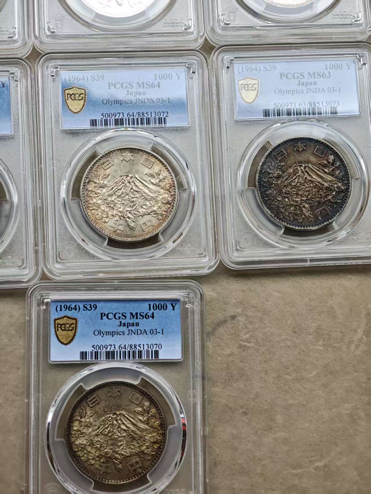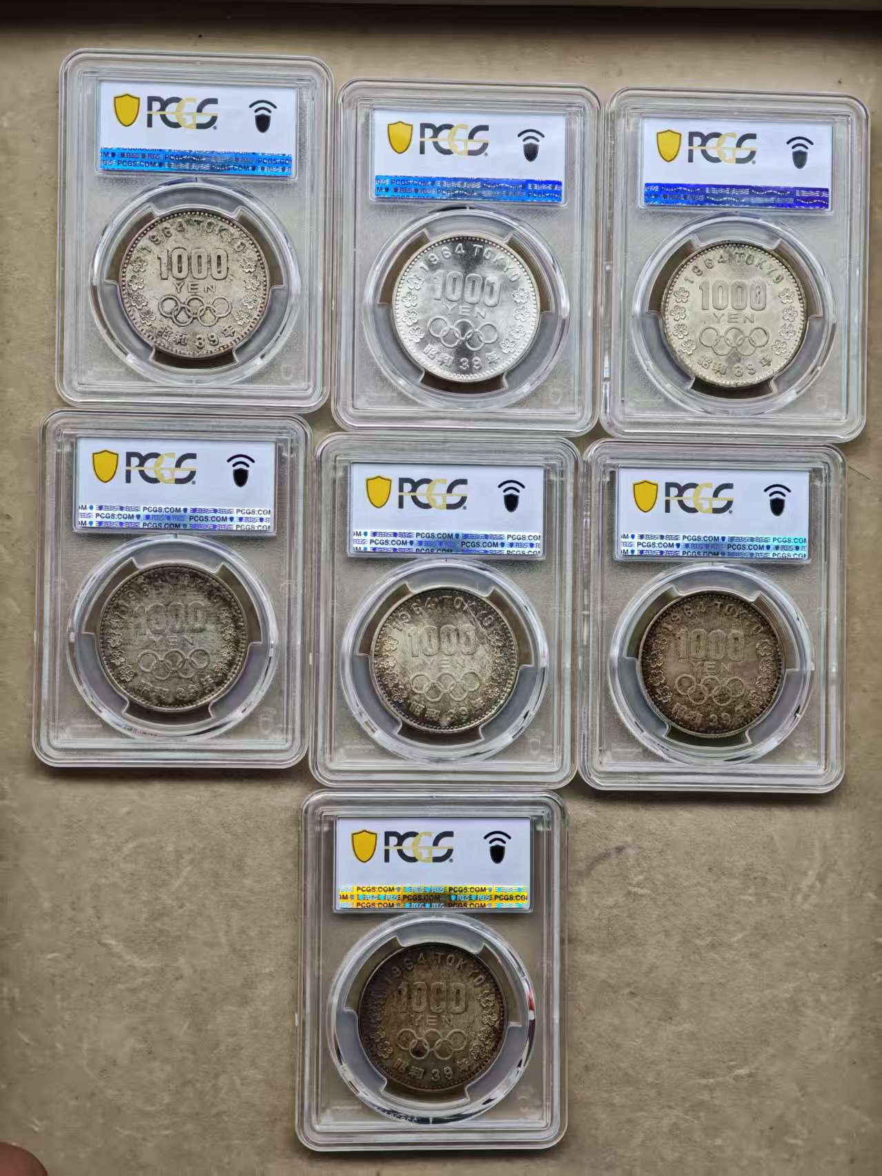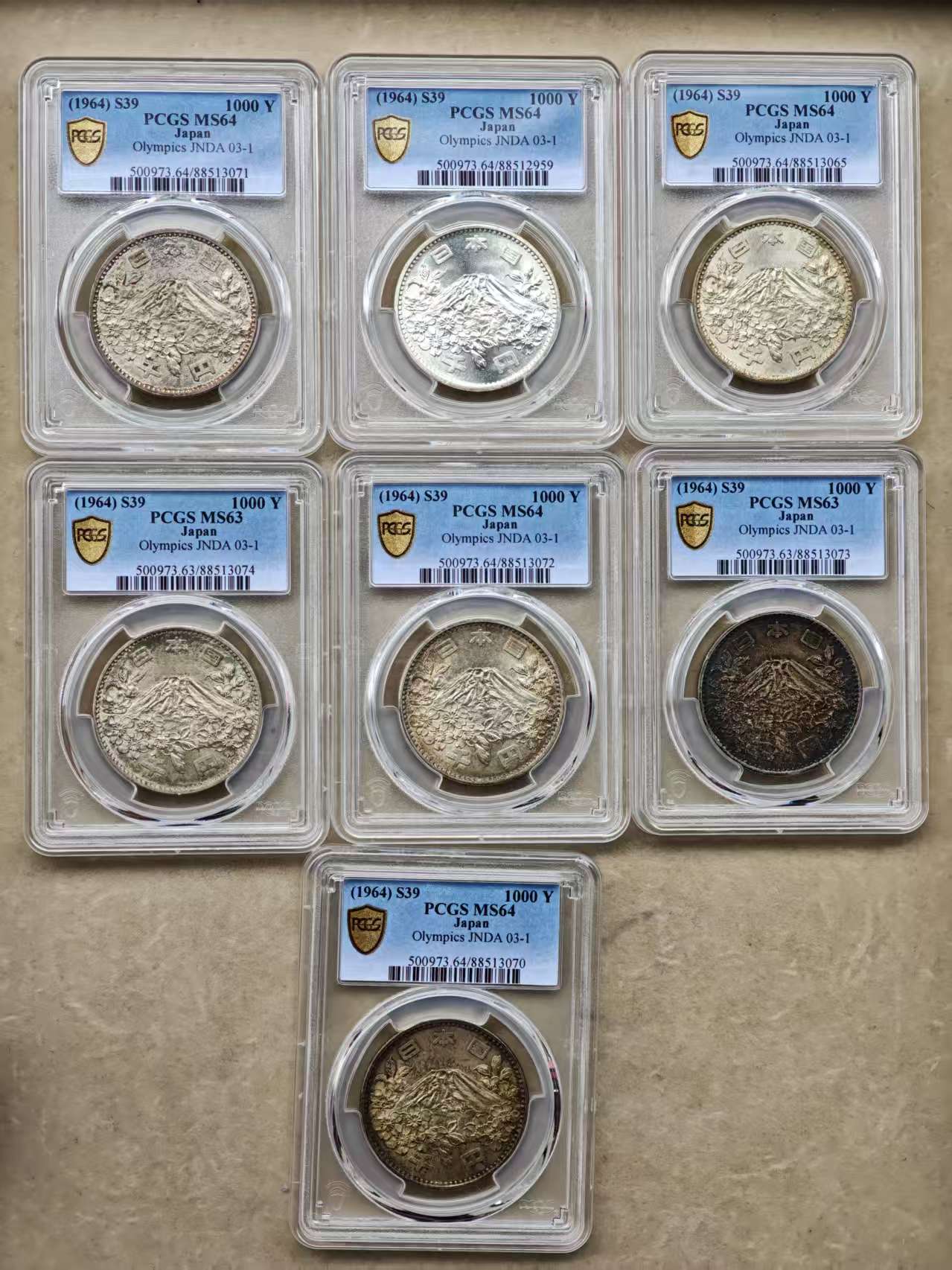 PCGS-MS63-64分 日本奥运1000元大银币 7枚