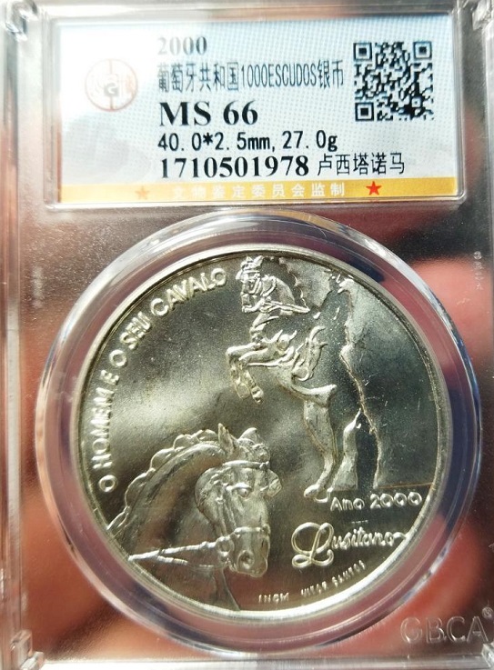 葡萄牙纪念大银币一公博己评级入盒66分