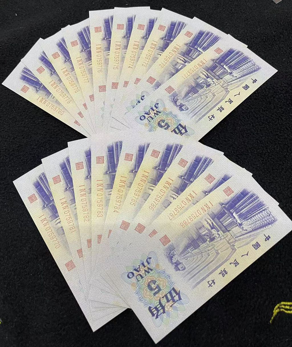 品相如图,全新直版原票19连,含1组标十,带豹子号777,有黄斑,220元/张。