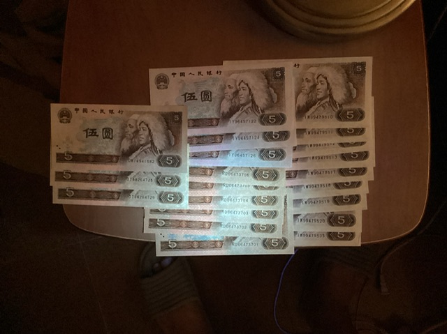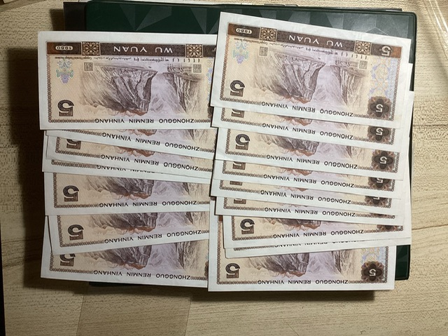 苍松翠鹤年份钞16张连号,均全新直板原票,尾号1988有丁点黄,其余均是肉眼无斑