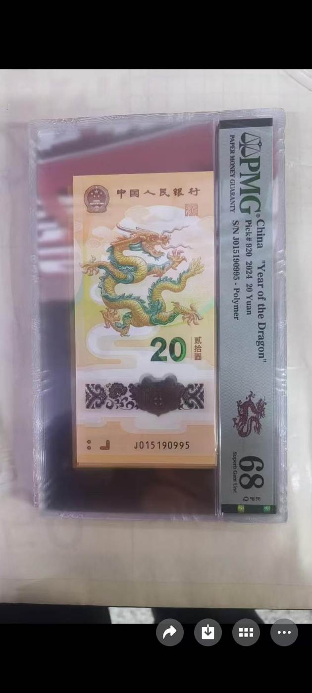 → 出小龙钞龙四0195金马号尾95,pmg68分