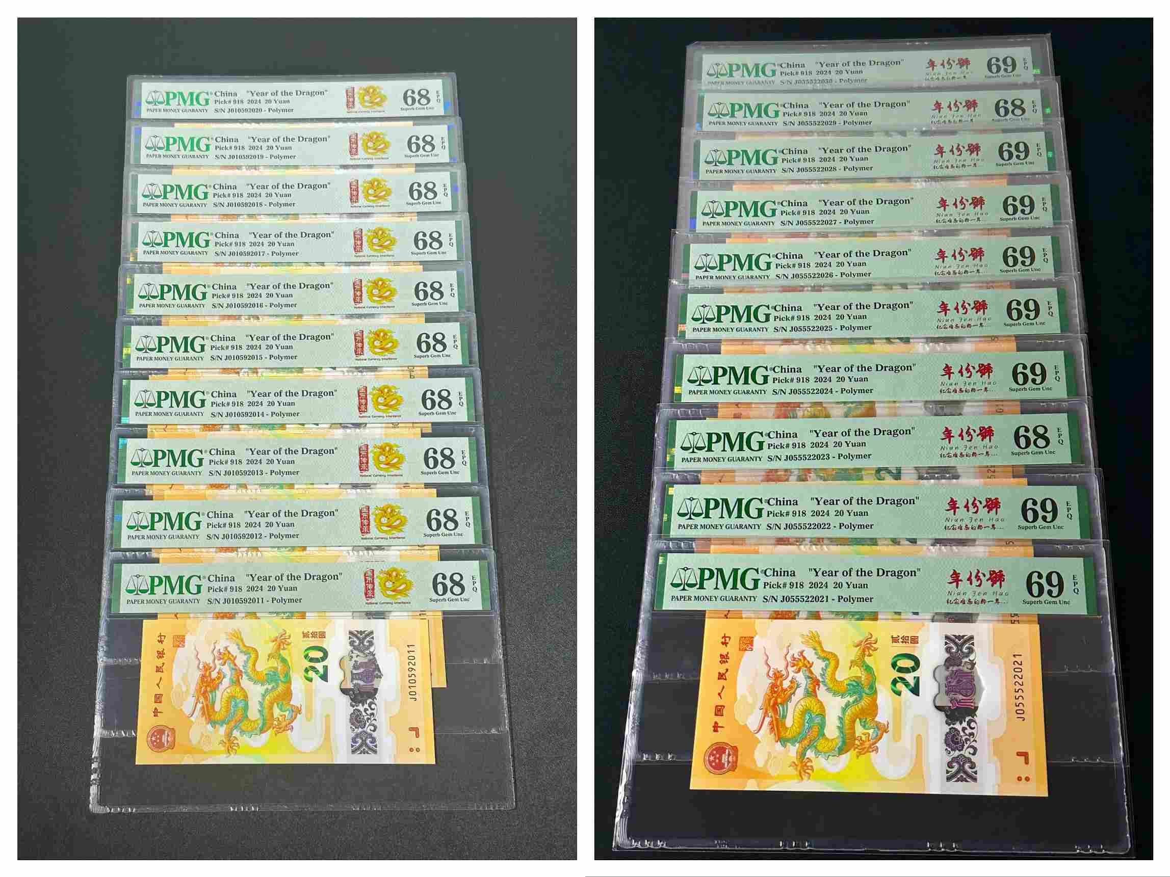 2:J055522021-2030,无347年份号标10,025龙三,含2024龙年号,PMG评级68分以上,8张69分,售价39888元