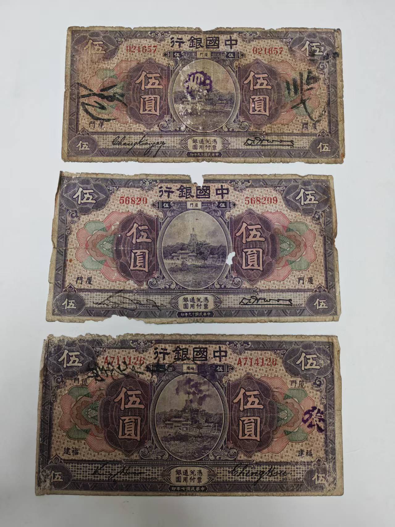 中国银行民7年、19年厦门三个版本共128元包邮