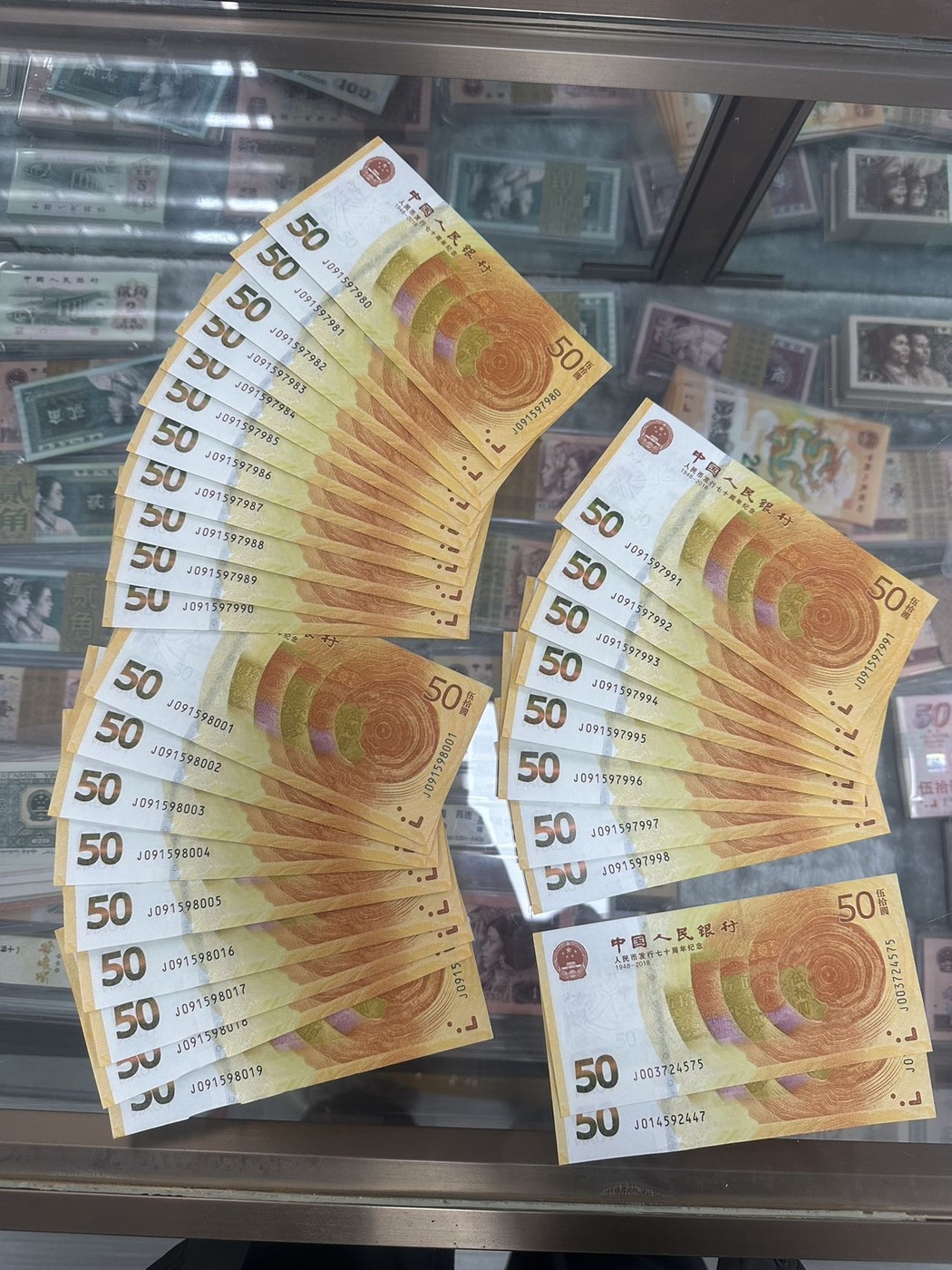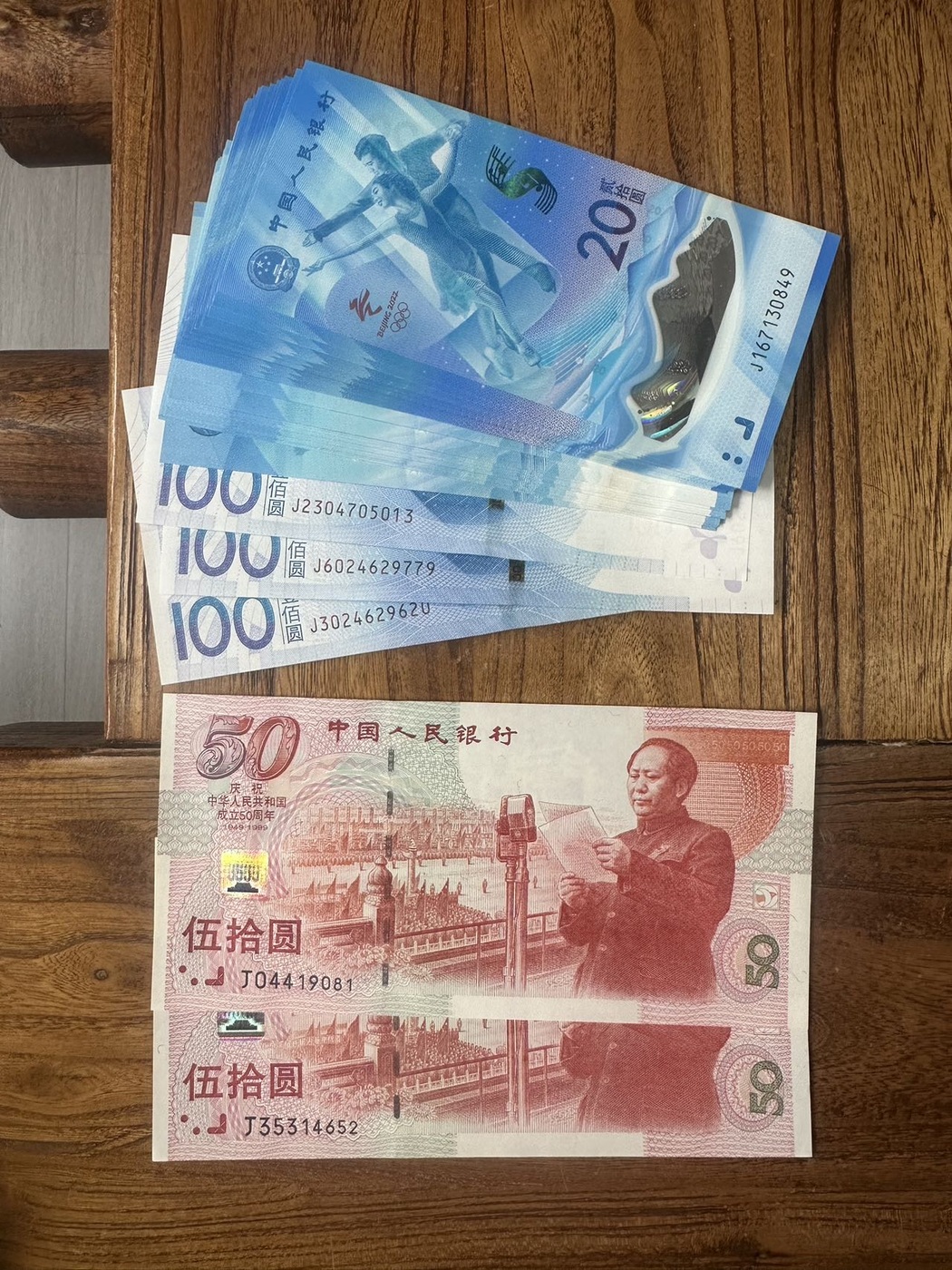 → 大龙钞1张,建国钞2张,70钞091补号30张,还有航天钞和冬奥钞