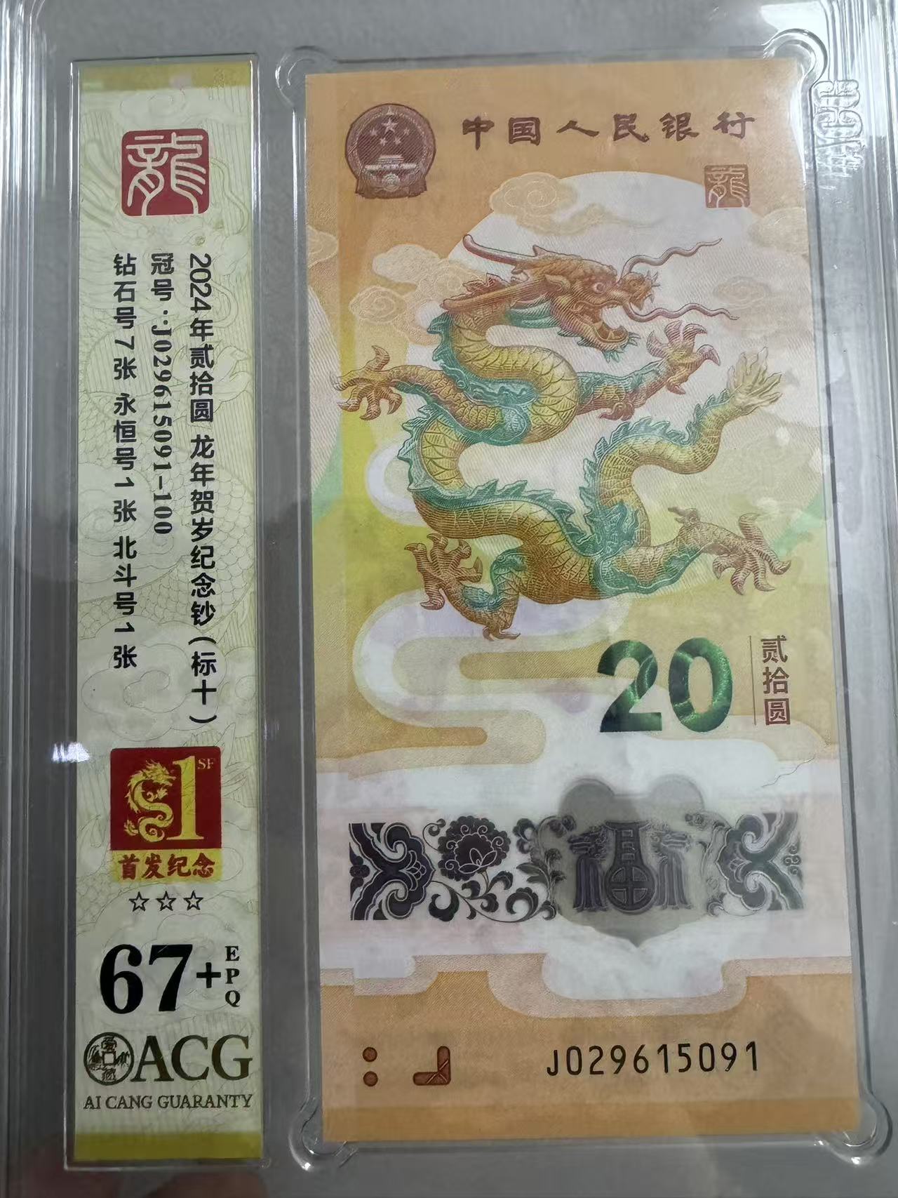 龙钞无347标十,首发认证,爱藏67+,售价6500.