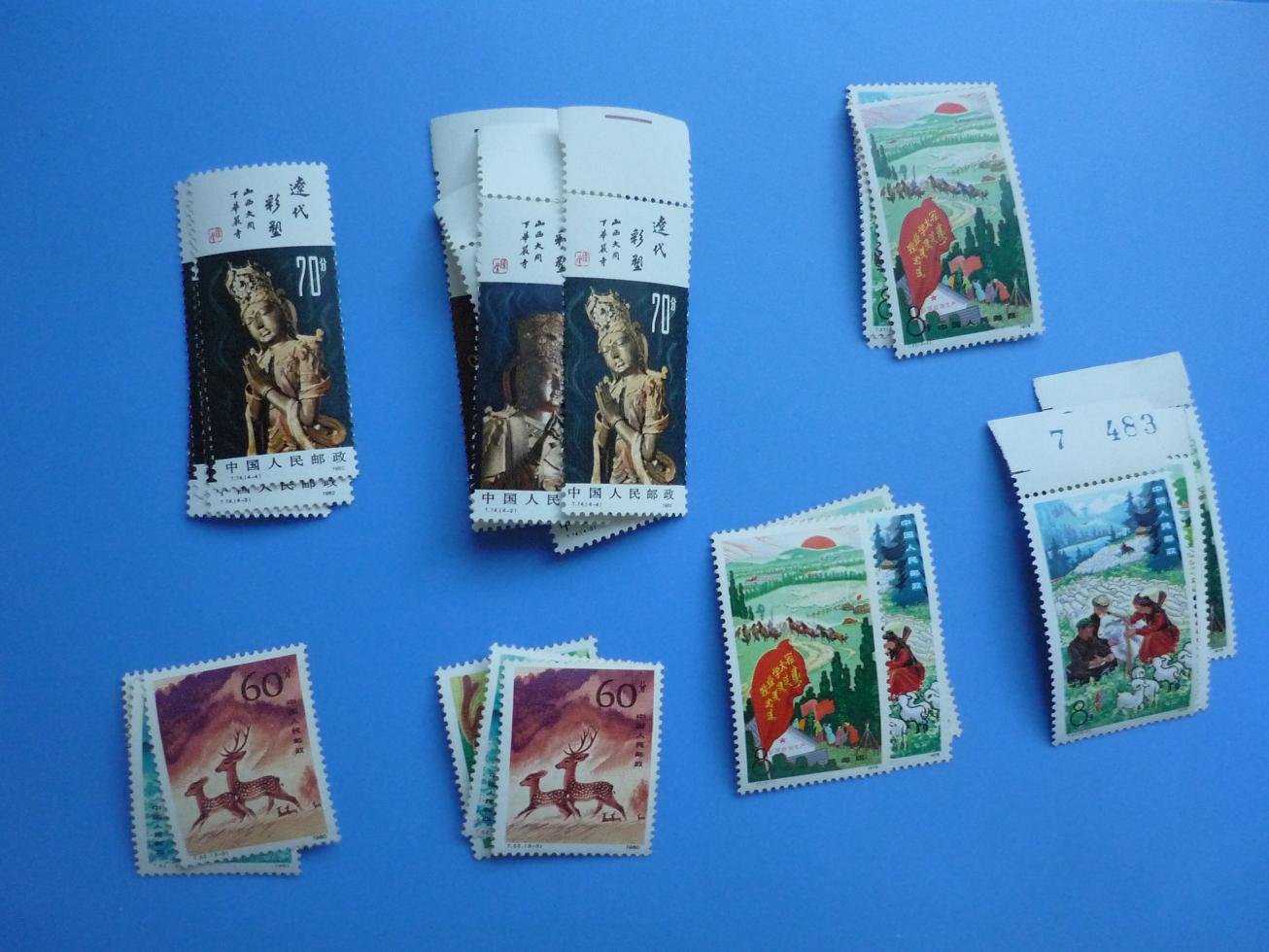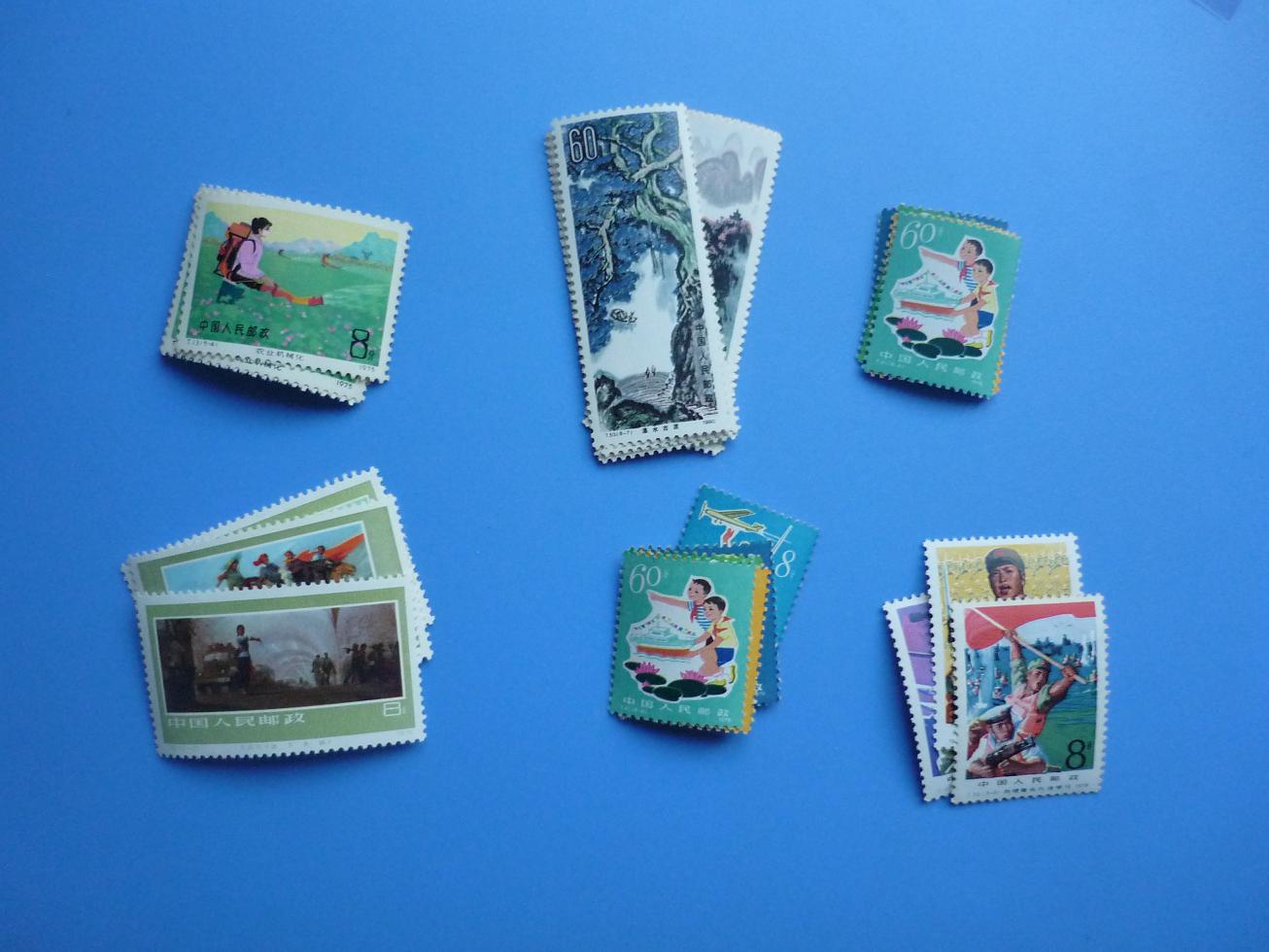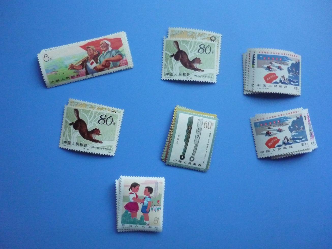 科利华边折近全品10,斯大林裸单近全品7,斯大林边不折近全品8,干校裸单近全品84,干校带边的齿间折93,阿巴金亮有氧近全品28,提供两套随机发,白中日上中两套近全品,每套6随机发,白中日下面一套银亮5,武术带边的齿间折银亮114,武术裸单银亮近全品110
