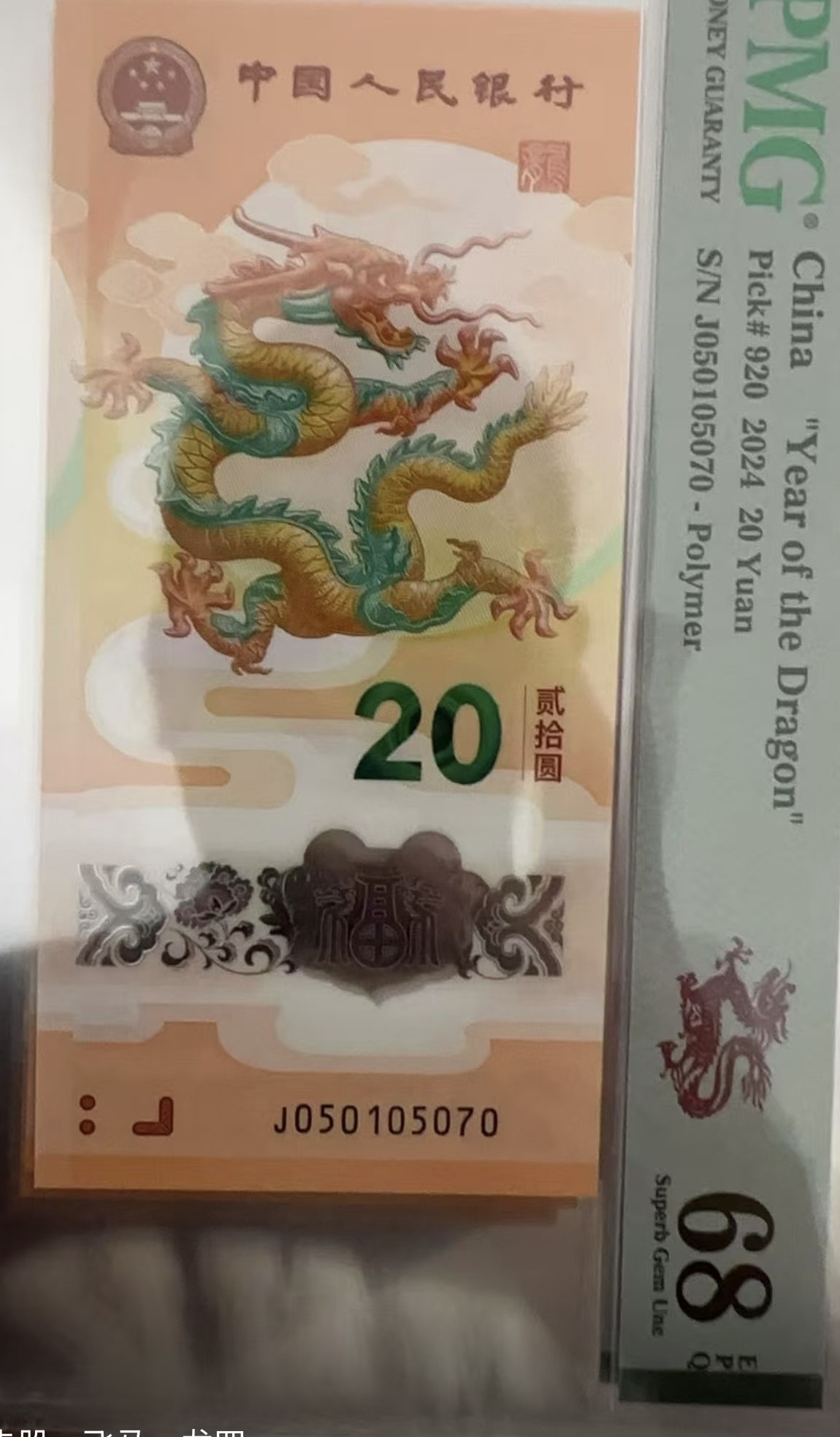 小龙钞大击鼓一张pmg68