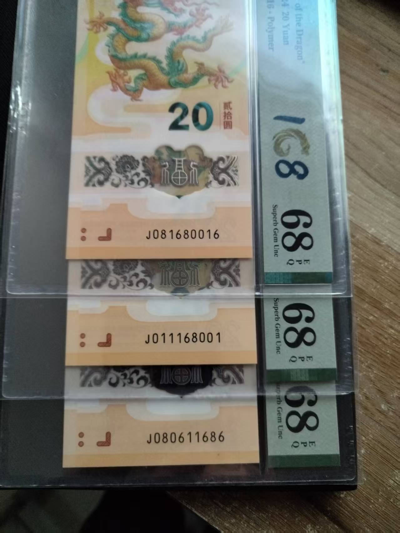 ███ ███ ███龙钞倒置PMG68分0168组合