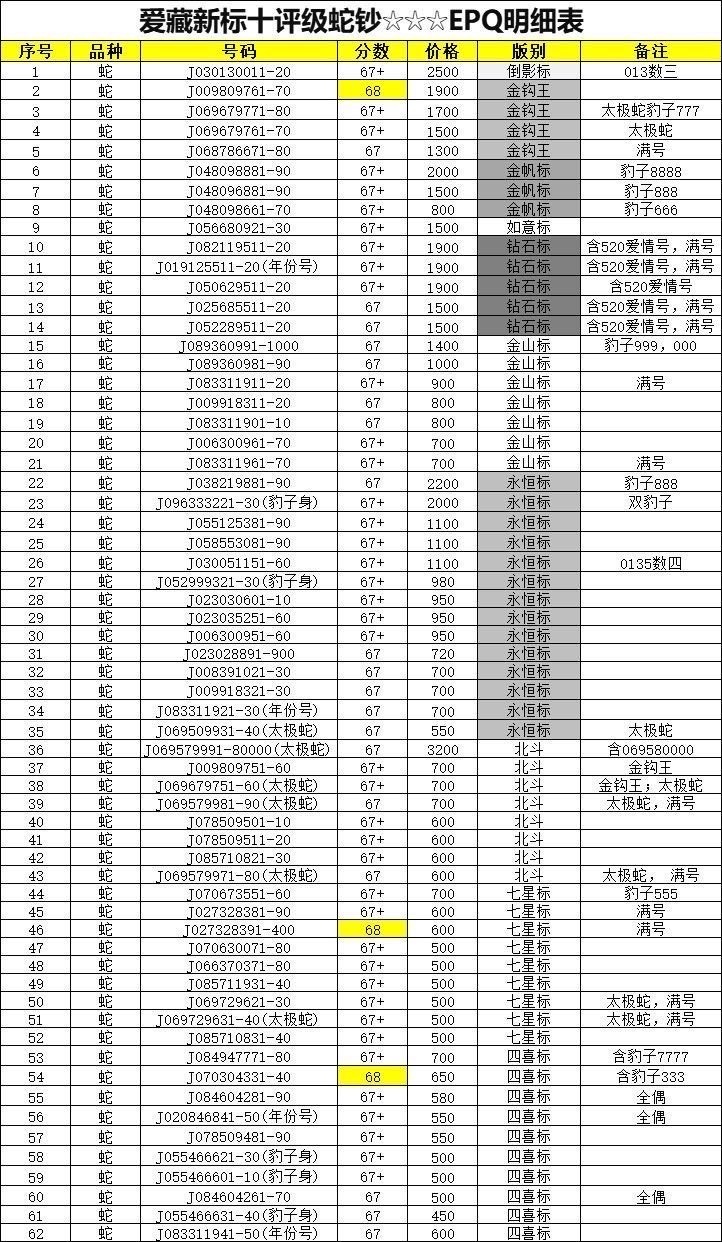 → 售60组多组蛇钞标十