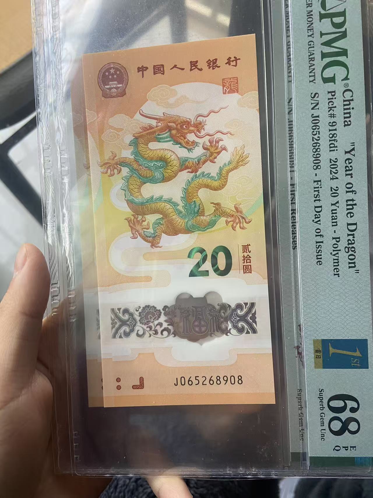 先款涨价收购小龙钞如意金蓝首日PMG68分(不带250)