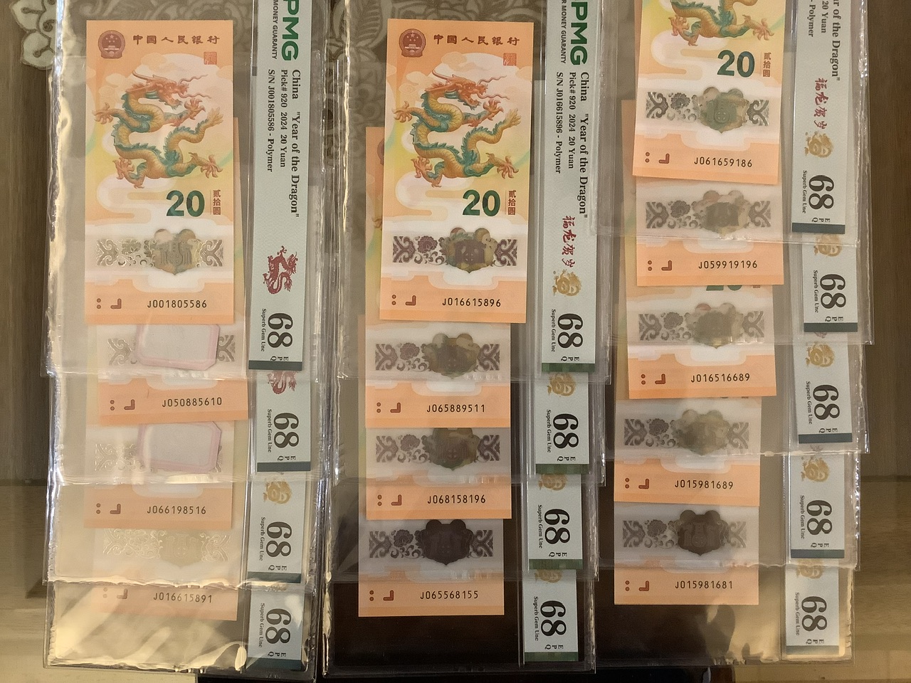 → 小龙钞金马号全满号01568一批PMG 68分