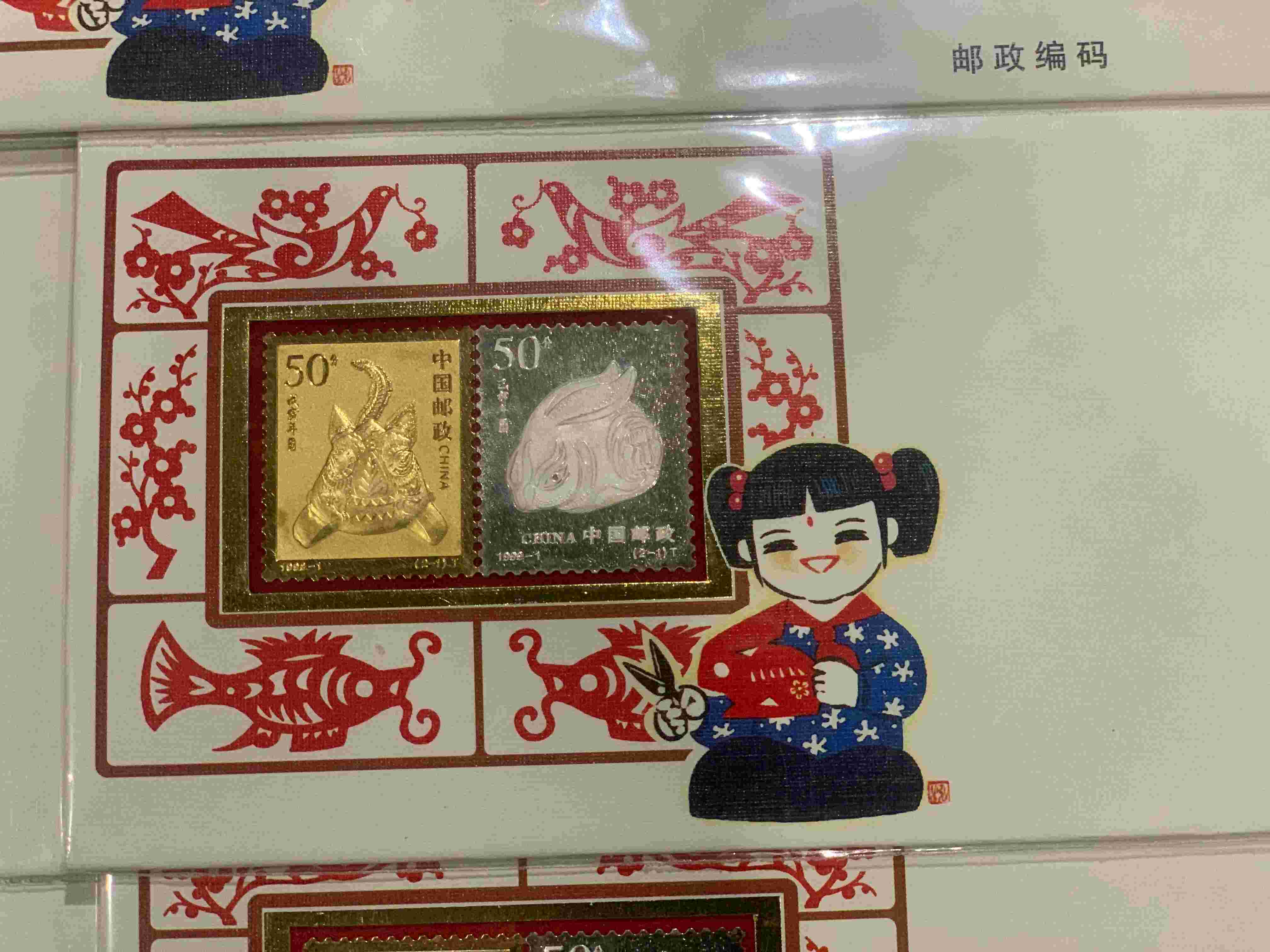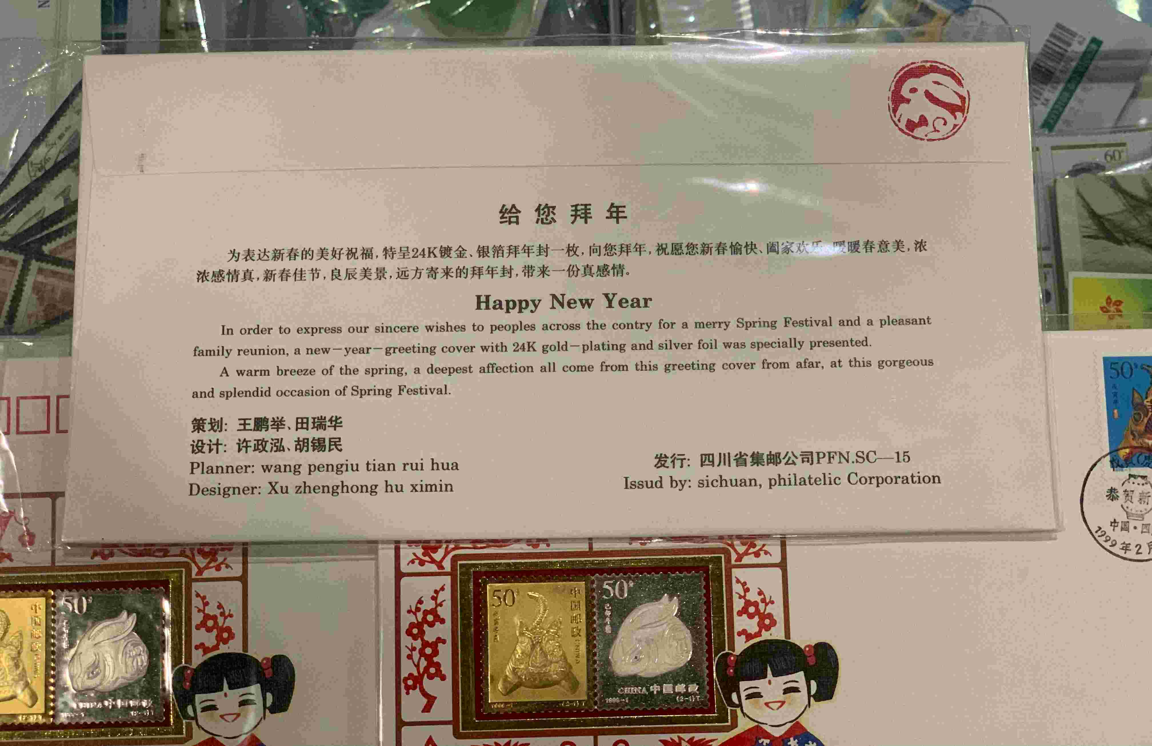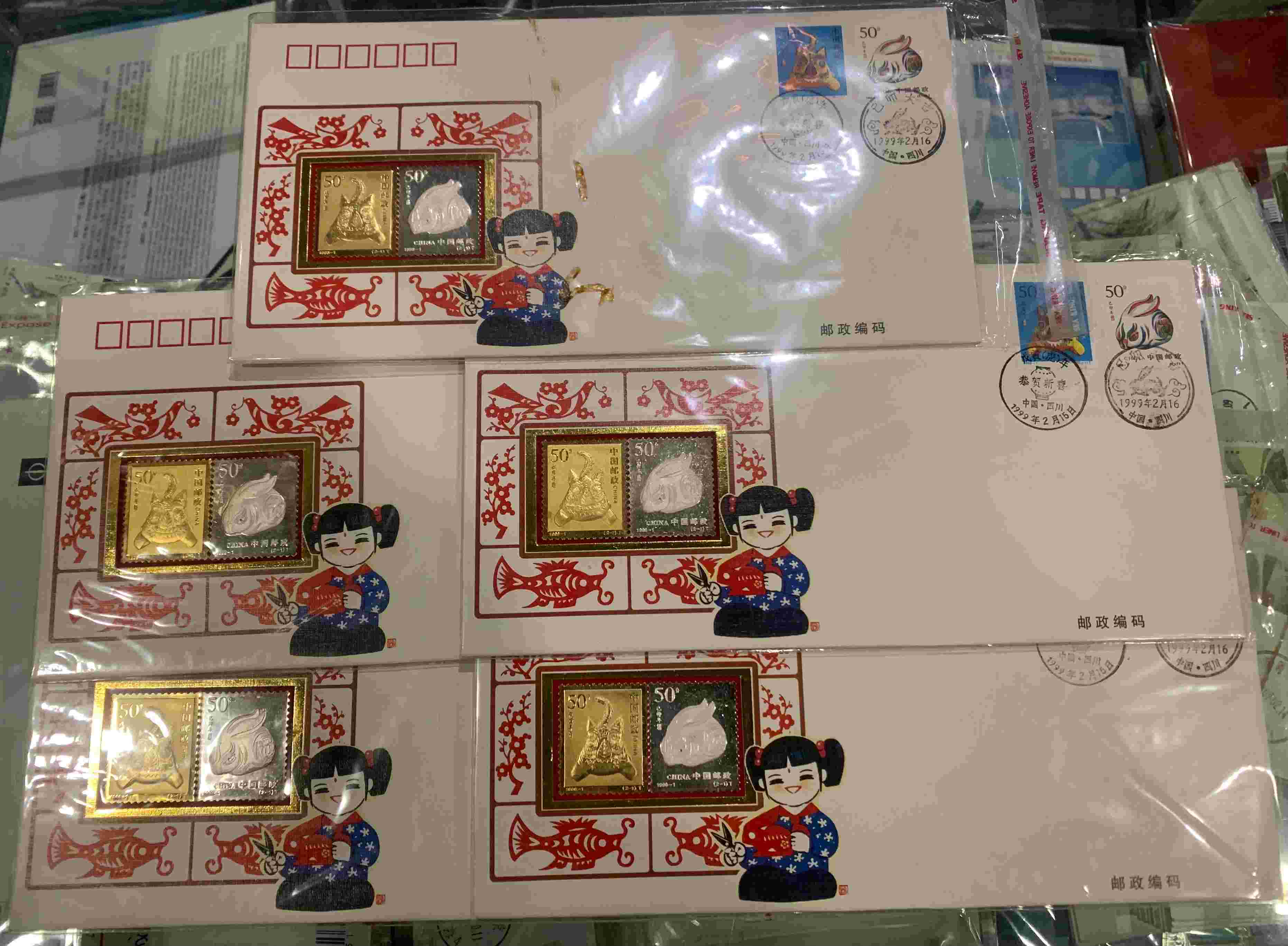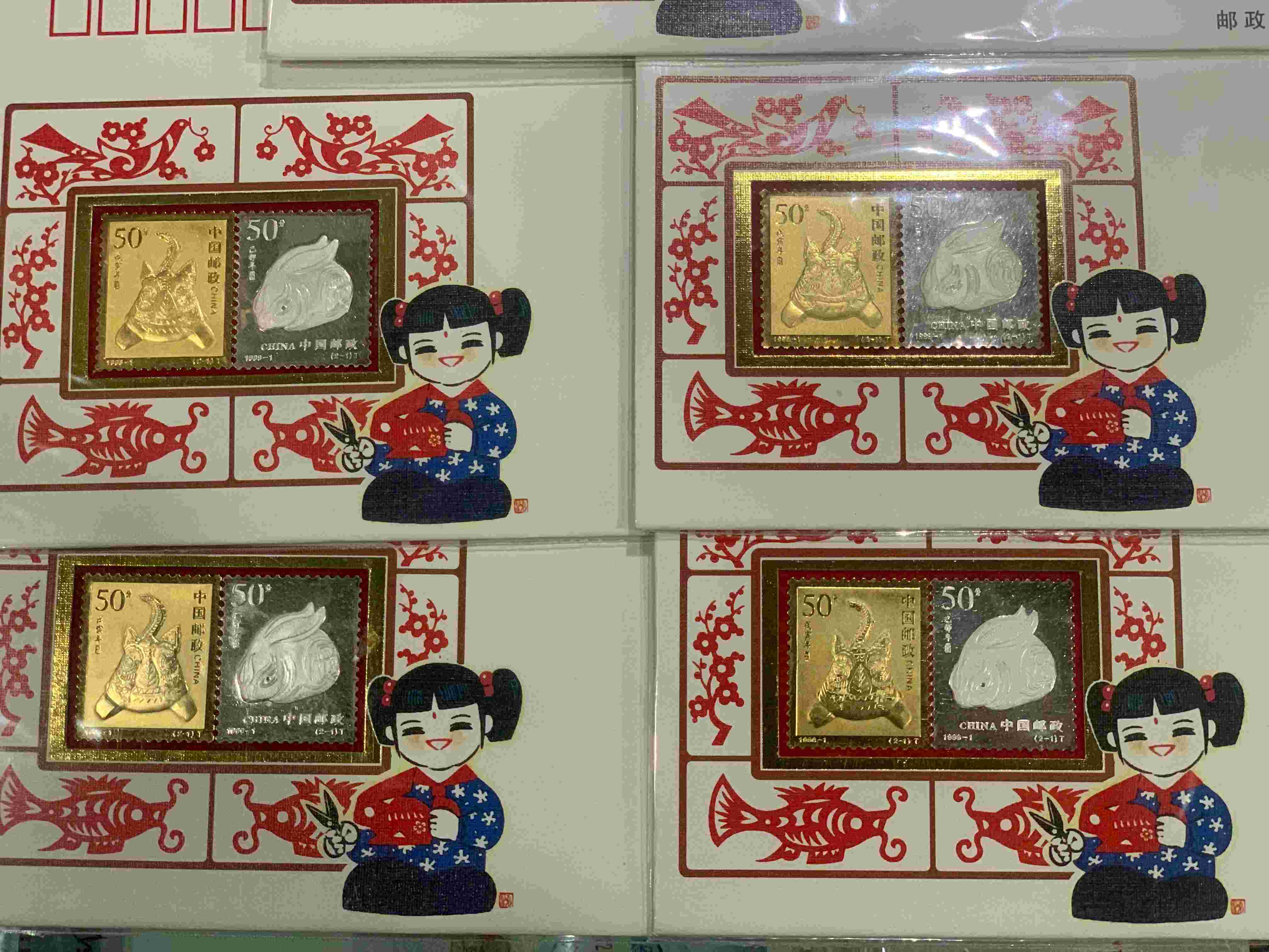 镀金镀银(虎、兔)拜年纪念封5枚 128.00元/枚