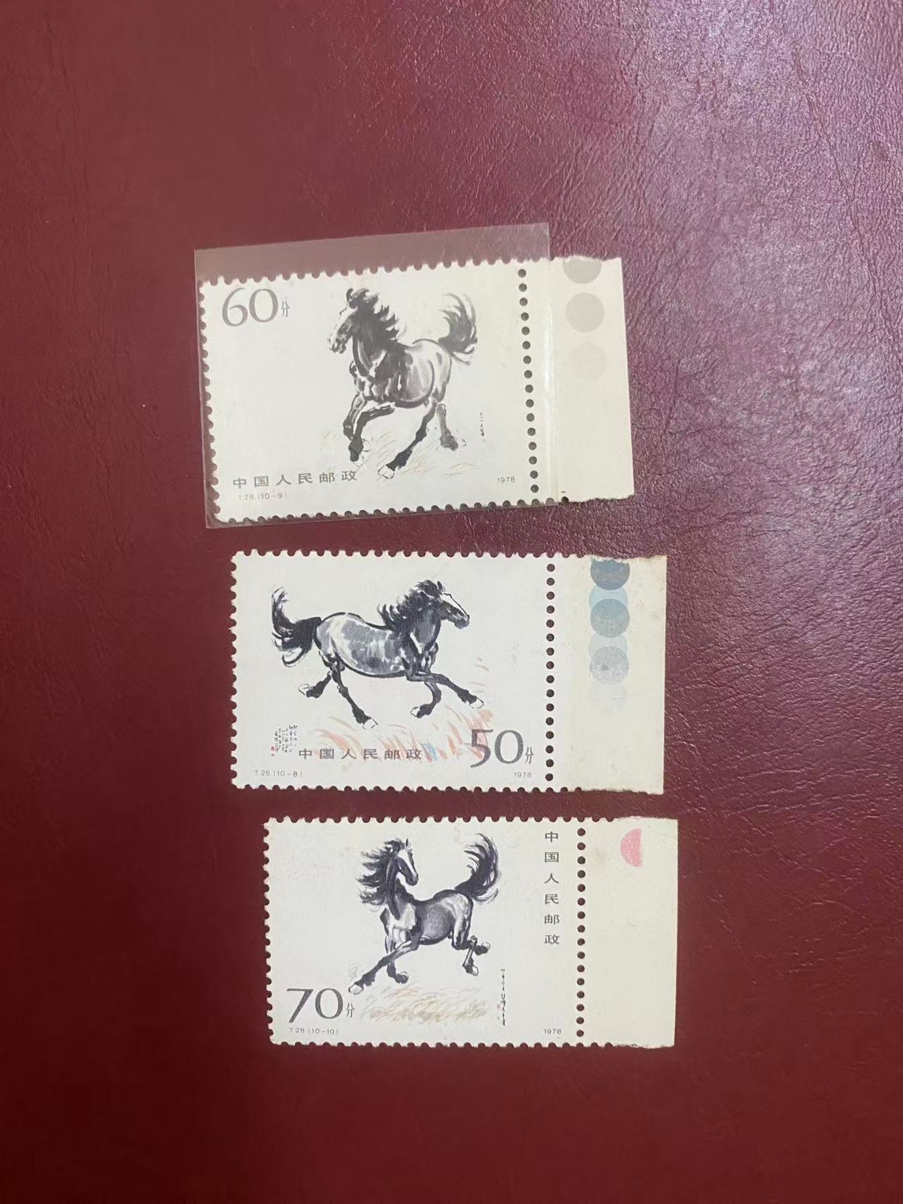 t18厂铭 有黄 460 奔马色标 小票全品无黄 8分 40分 20分边的齿孔有折 50 分60分70 分的边有黄 70分 票 的边角有微黄 330 西厢记左上微黄 右上边齿有折 下面2张全品130