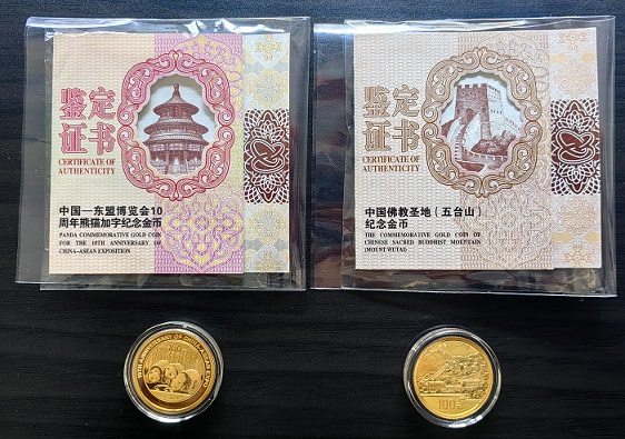 1,五台山四分之一盎司金币,证书(39726)1120元1克,不议价,到付