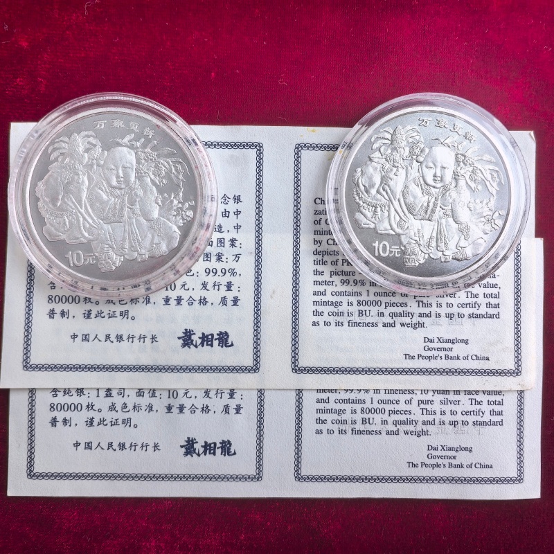 出98万象更新银币二枚(有证书无盒),一盎司,全品无氧化,价格750一枚,包京东